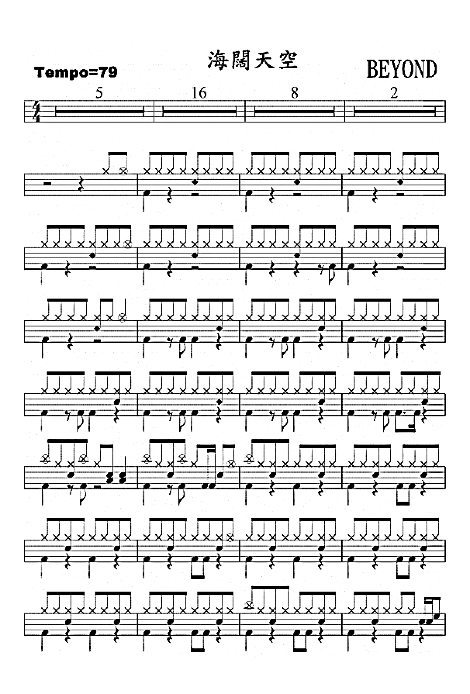 曲谱介绍: 海阔天空(原版鼓谱)-beyond