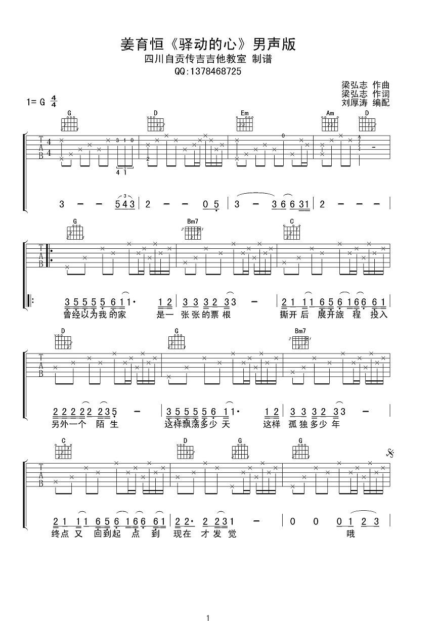 曲谱介绍: 姜育恒演唱的一首歌曲,4/4拍的节奏,这首歌曲的原调为G调,这里曲谱采用了G调指法进行编配,演唱时可不夹变调夹,曲谱由琴谱网更新上传,曲谱来源于网络转载,编配制谱者暂不详。姜育恒有“忧郁王子”之称,充满孤独、忧郁的歌声及其入心。他的愁、他的落寞,也许现在已不合时宜。但是经过多后的今天,这首《驿动的心》现在听来,依然撞击每个现代人的脆弱心灵。