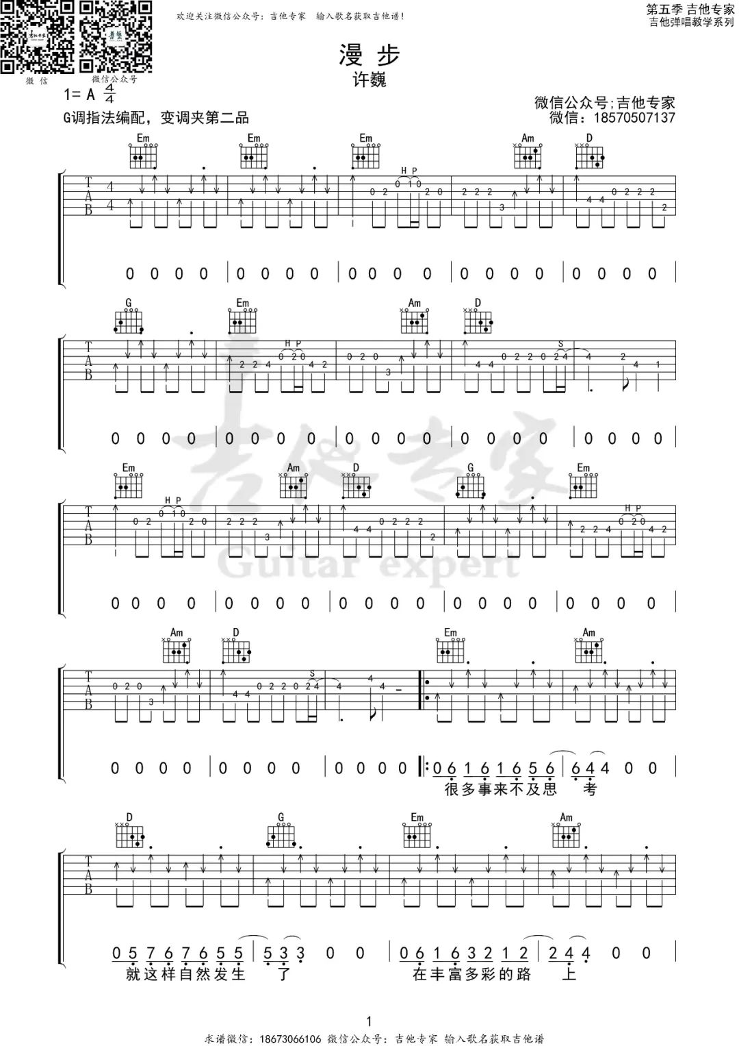 漫步吉他谱 - 许巍 - G调吉他弹唱谱
