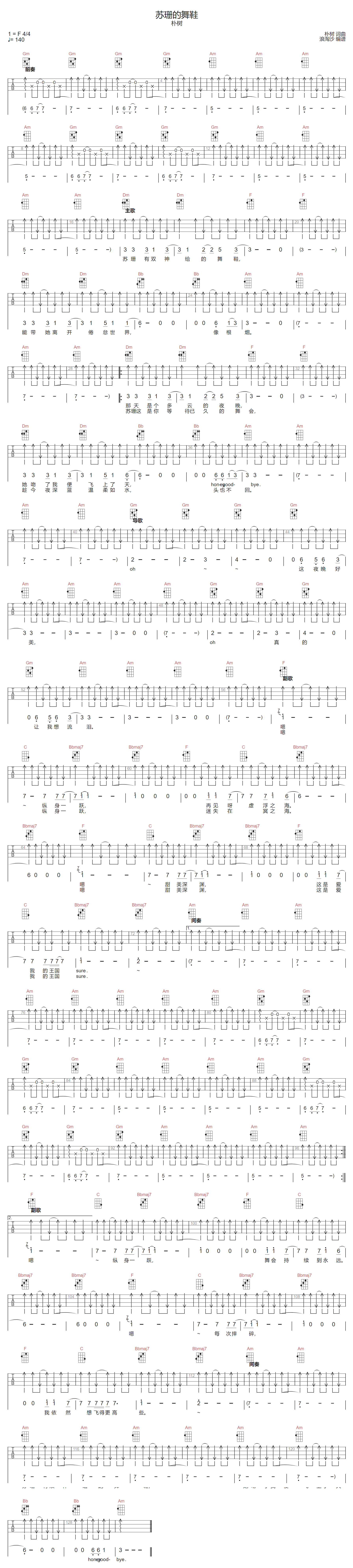 苏珊的舞鞋吉他谱 - 朴树 - F调吉他弹唱谱