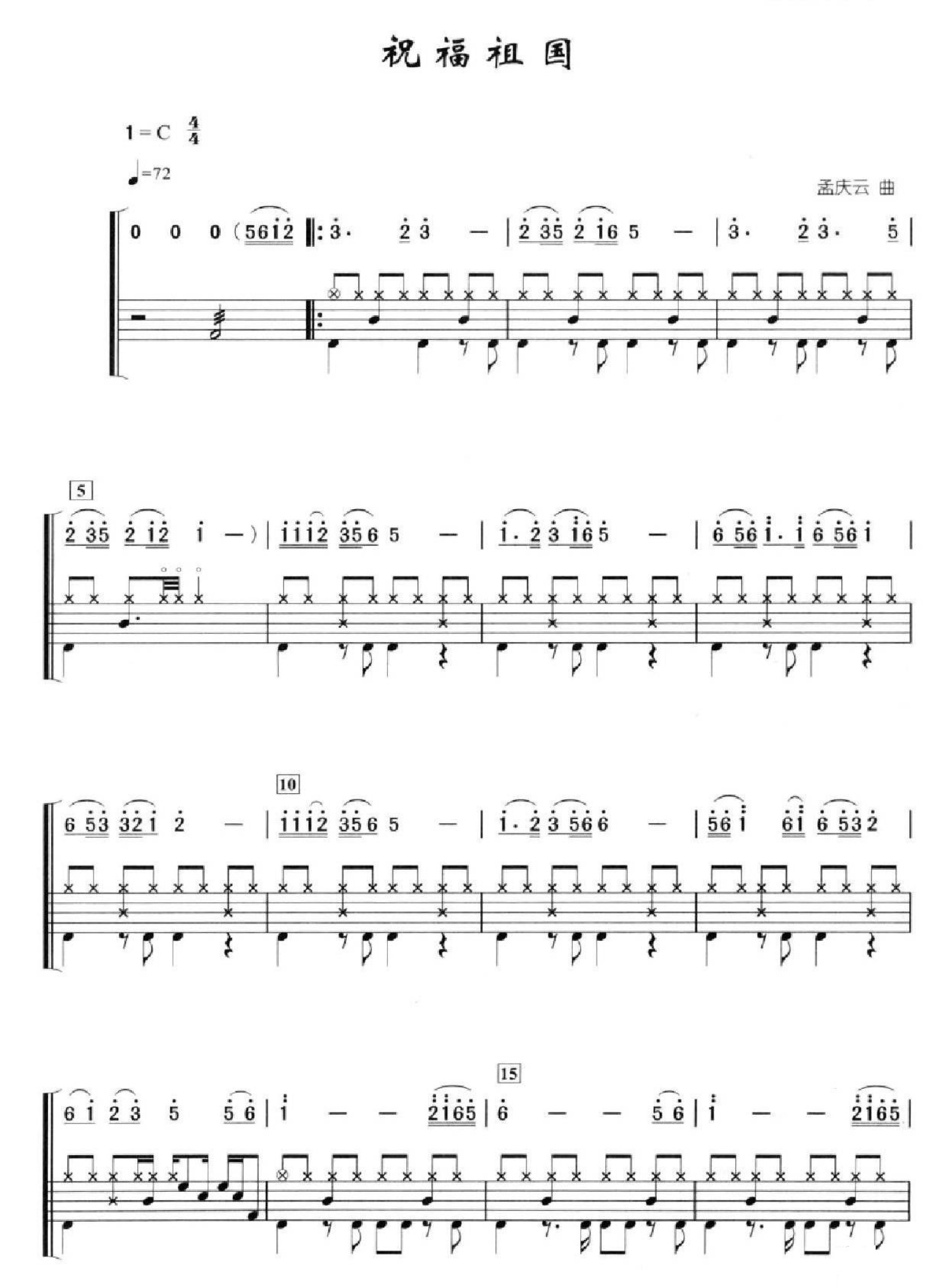 曲谱介绍: 祝福祖国(架子鼓谱)
