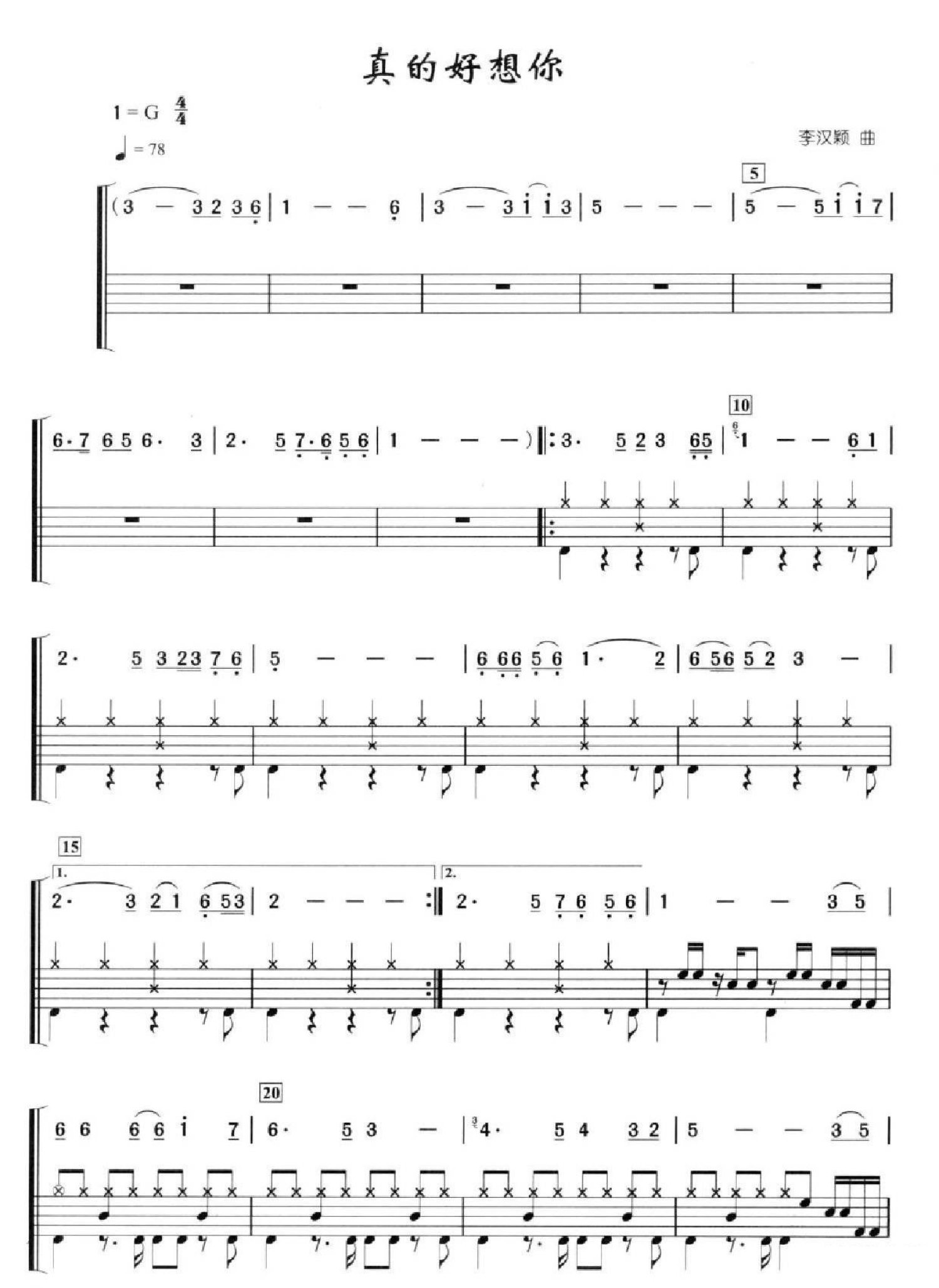曲谱介绍: 真的好想你(架子鼓谱)