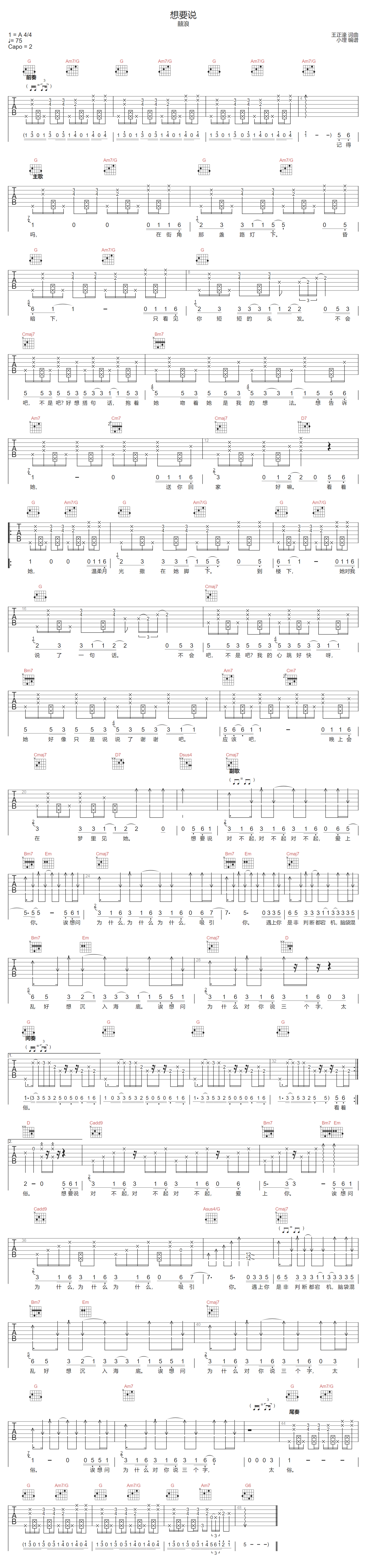 当前位置:琴谱网>吉他弹唱>想要说