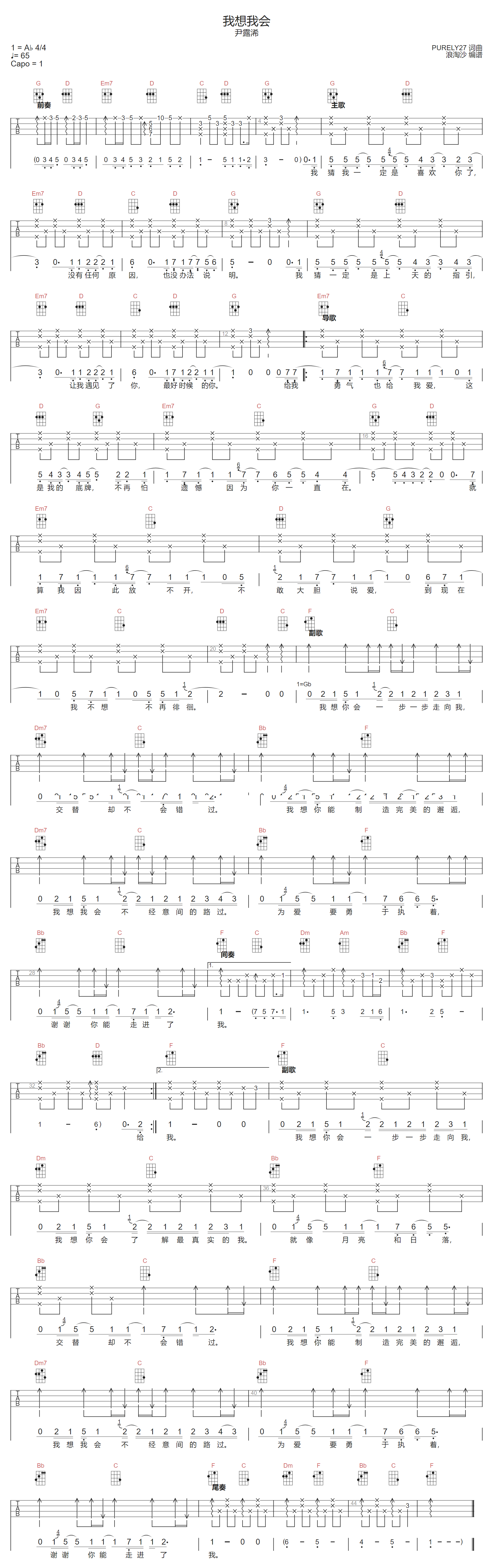 我想我会吉他谱 - 尹露浠 - G调吉他弹唱谱 - 原版