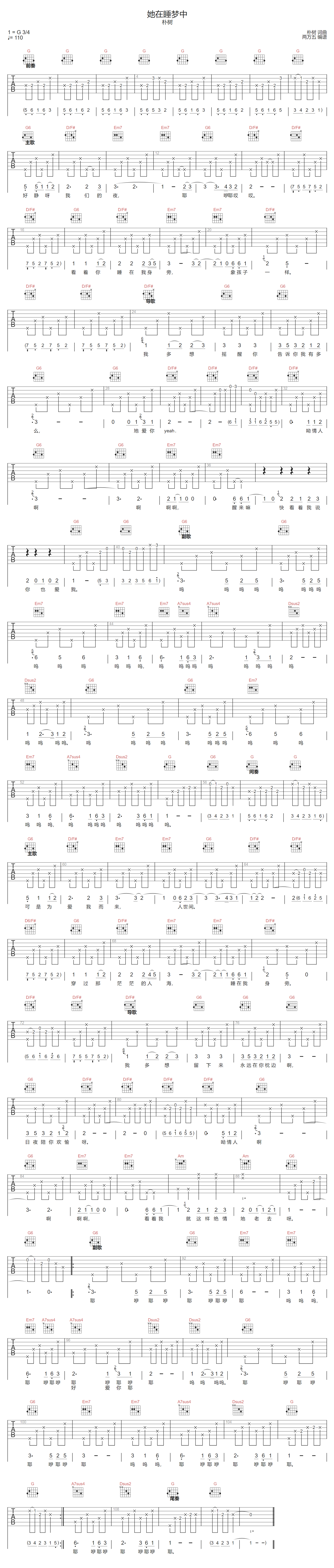 当前位置:琴谱网>吉他弹唱>她在睡梦中