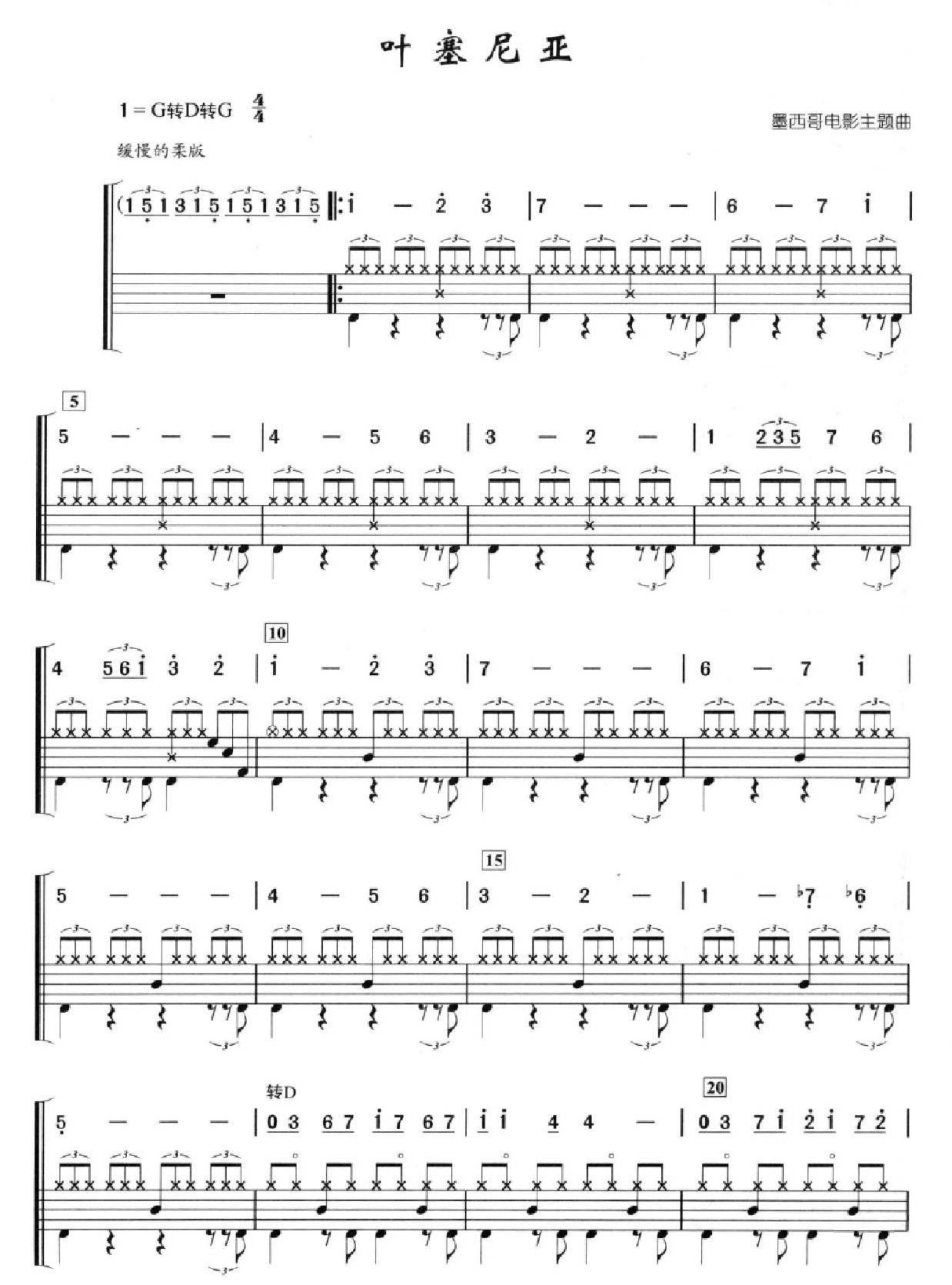 曲谱介绍: 叶塞尼亚(架子鼓谱)
