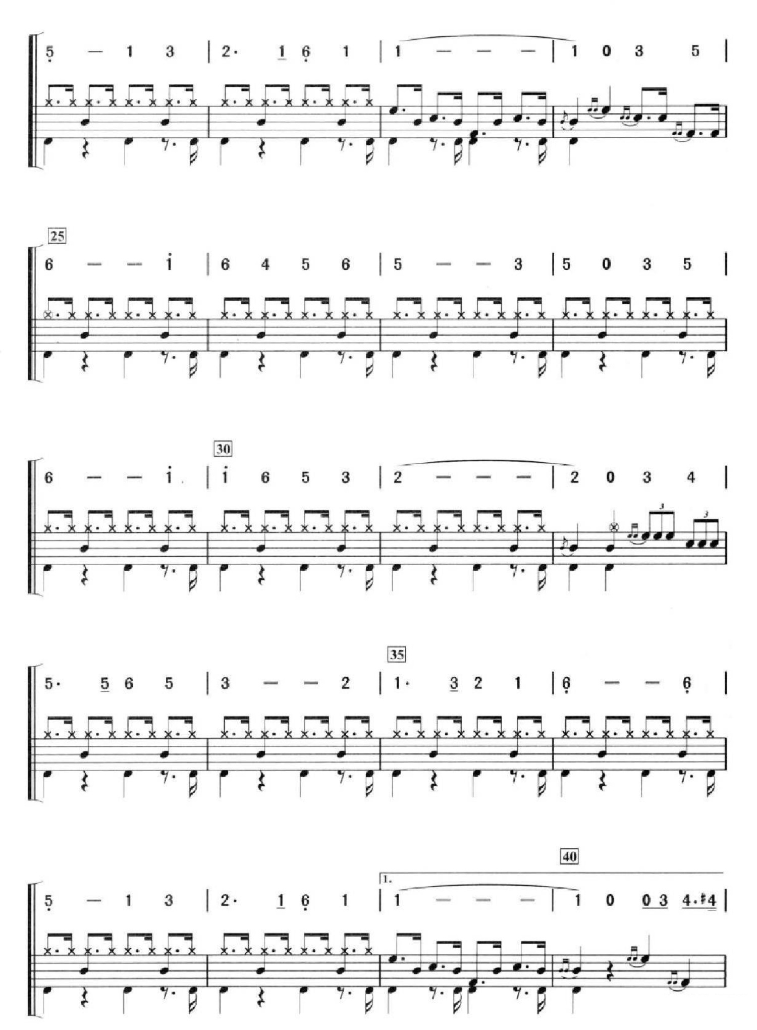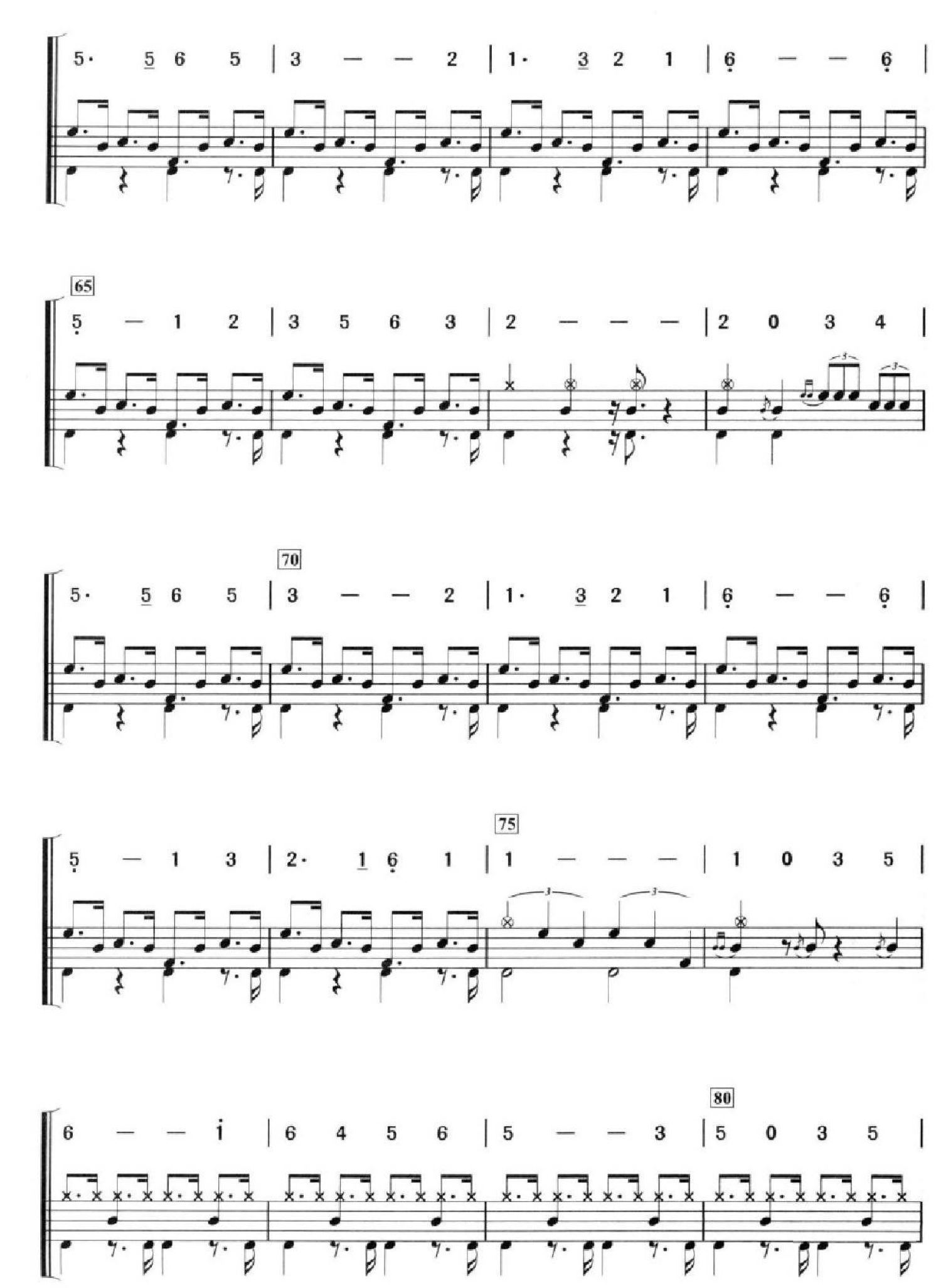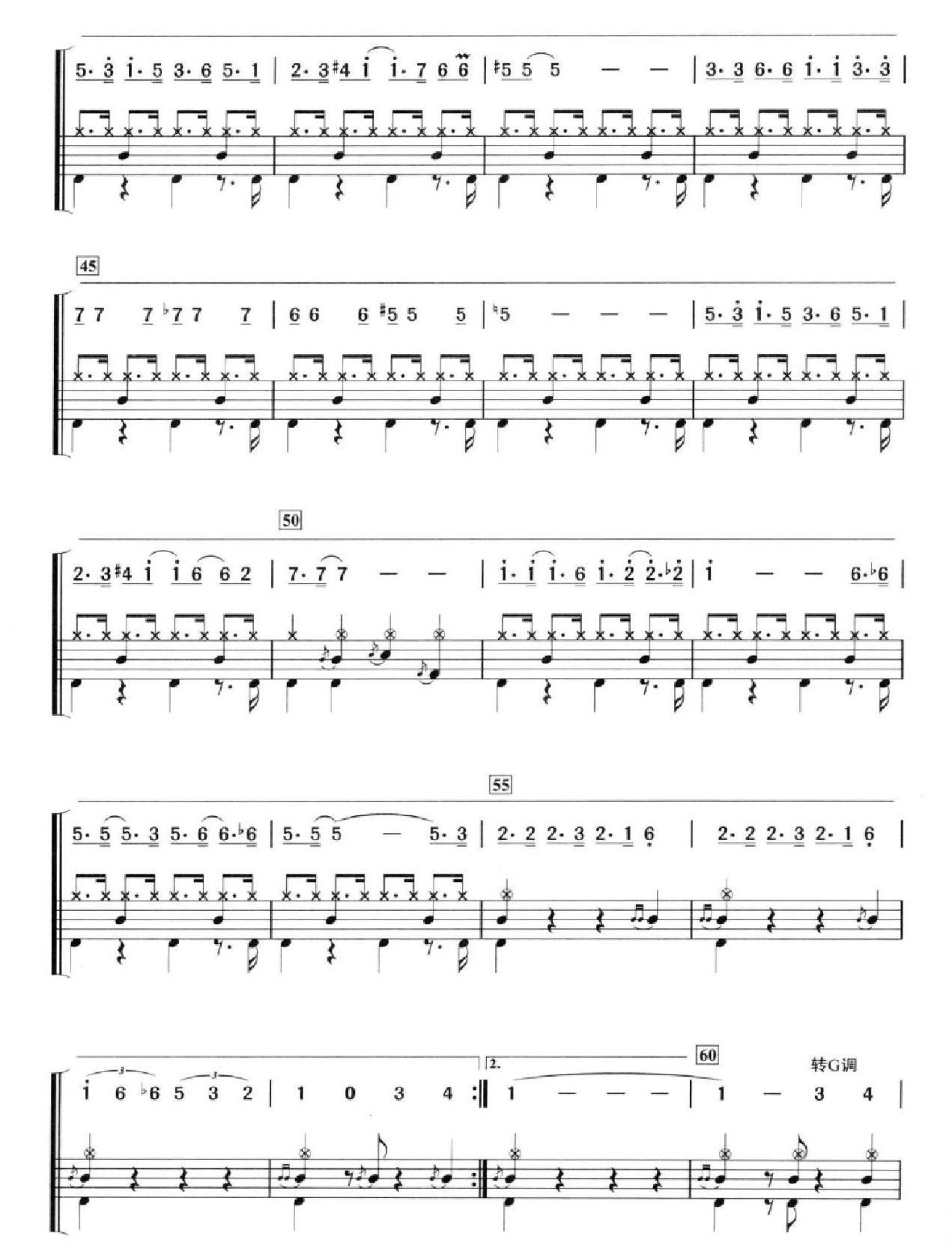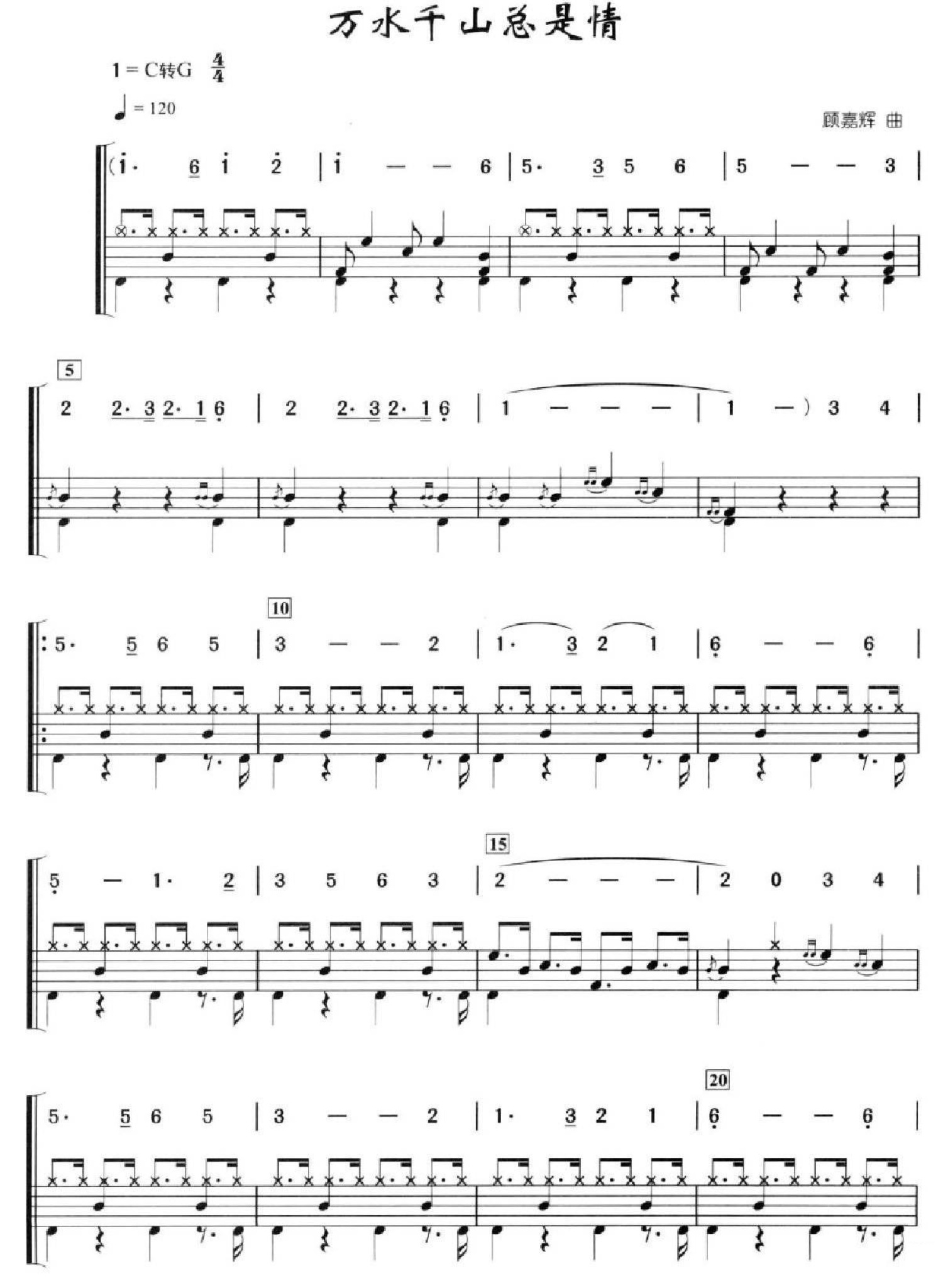 曲谱介绍: 万水千山总是情(架子鼓谱)