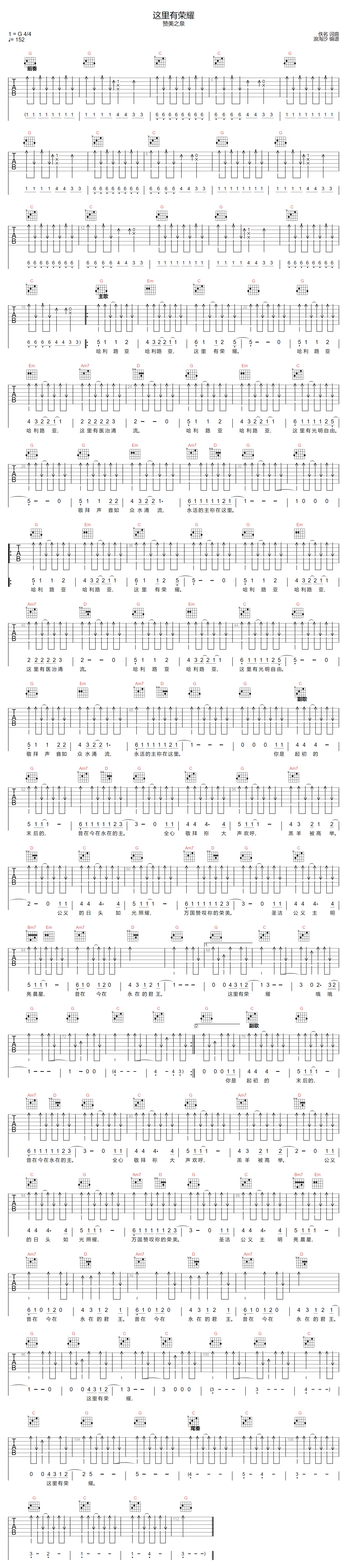 这里有荣耀吉他谱 - 赞美之泉 - G调吉他弹唱谱