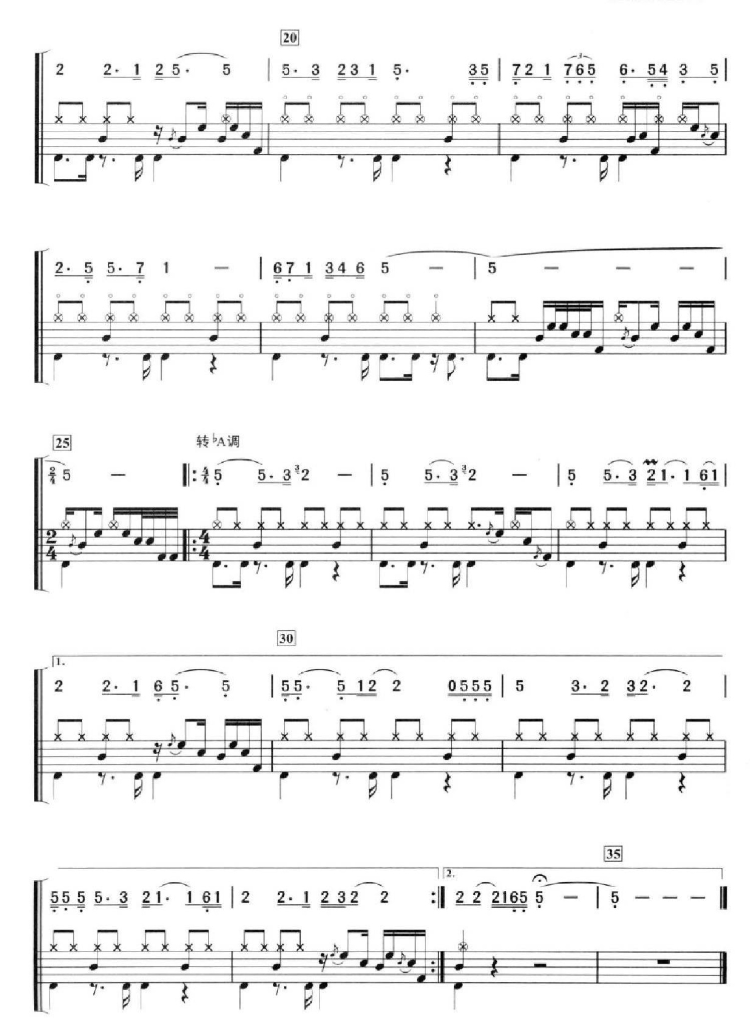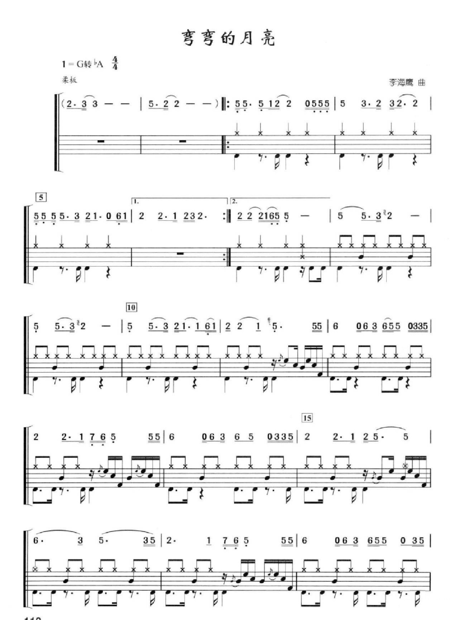 曲谱介绍: 弯弯的月亮(架子鼓谱)