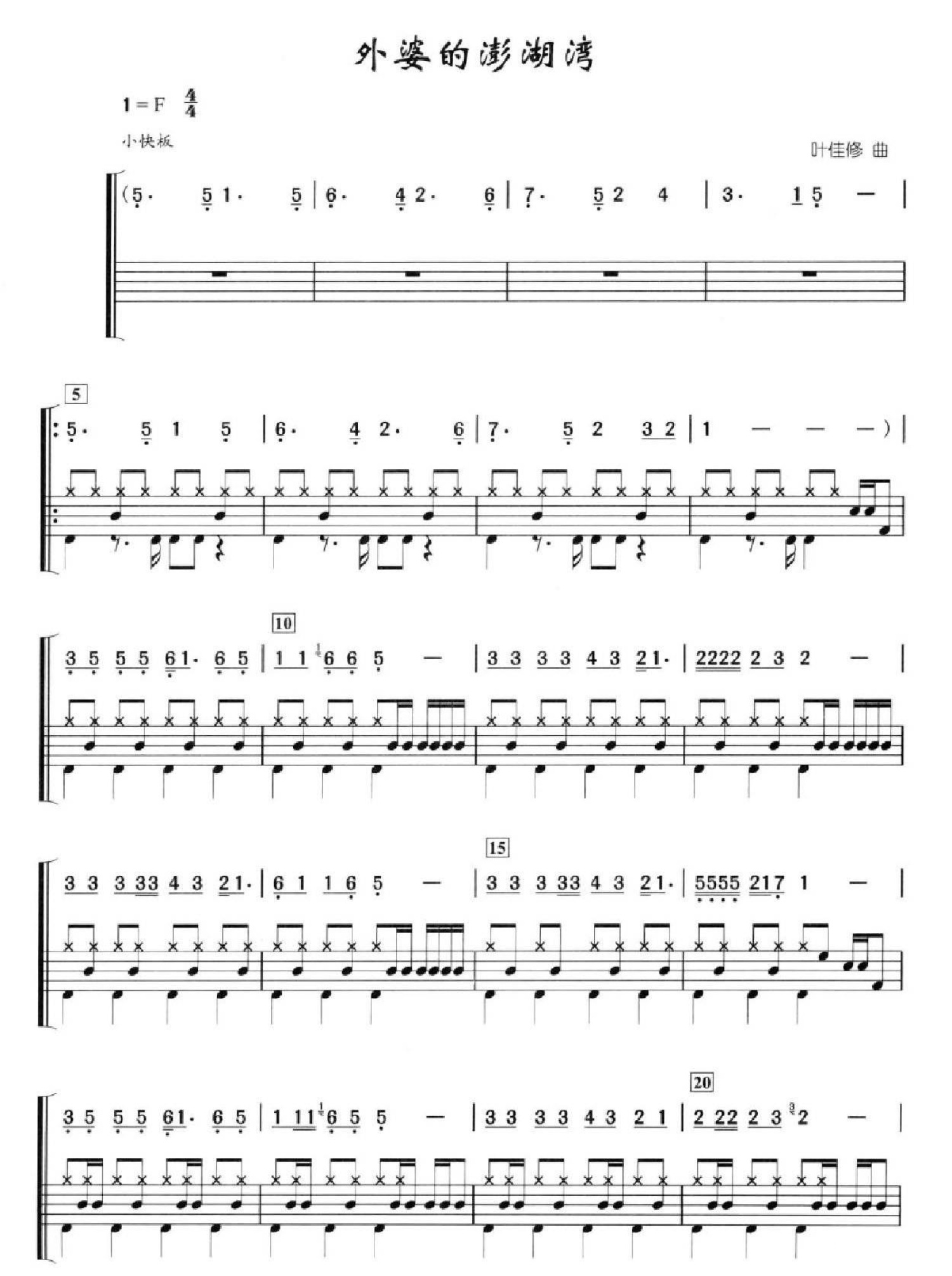 曲谱介绍: 外婆的澎湖湾(架子鼓谱)