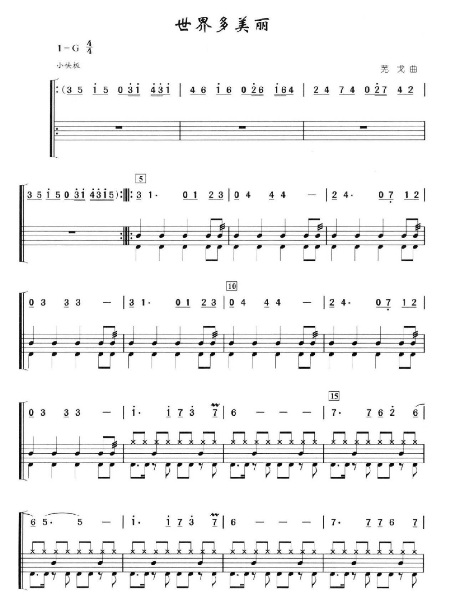 曲谱介绍: 世界多美丽(架子鼓谱)