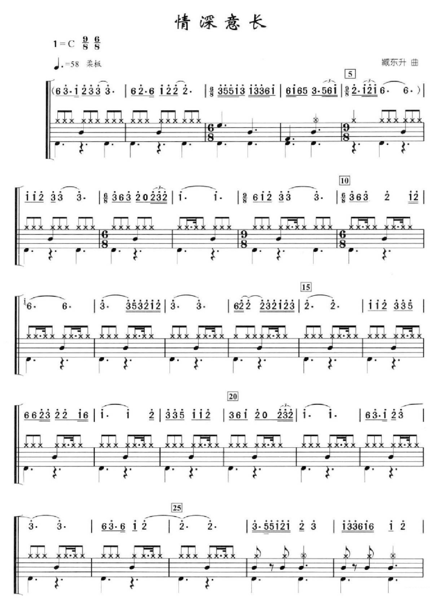 曲谱介绍: 情深意长(架子鼓谱)