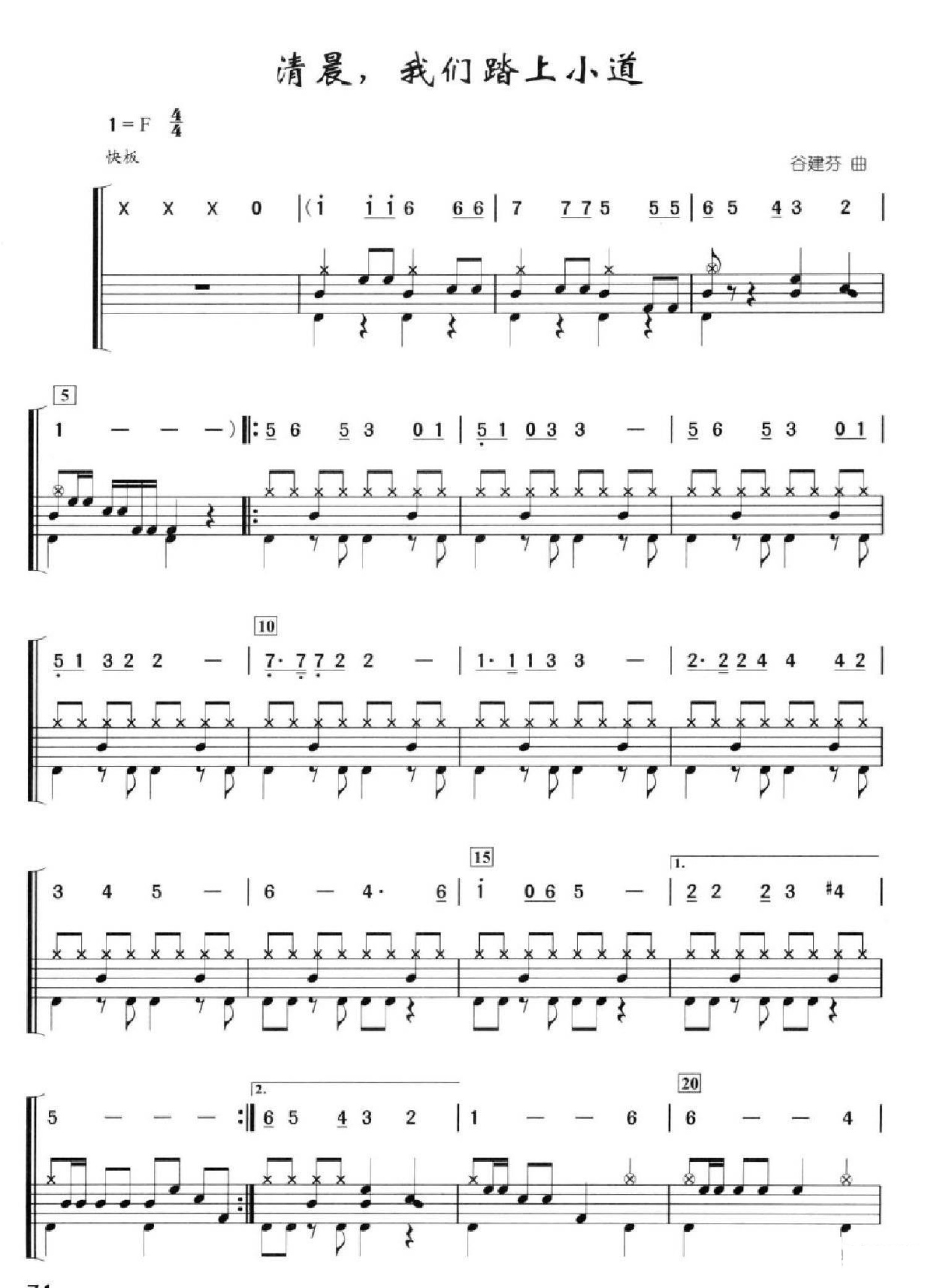 曲谱介绍: 清晨,我们踏上小道(架子鼓谱)