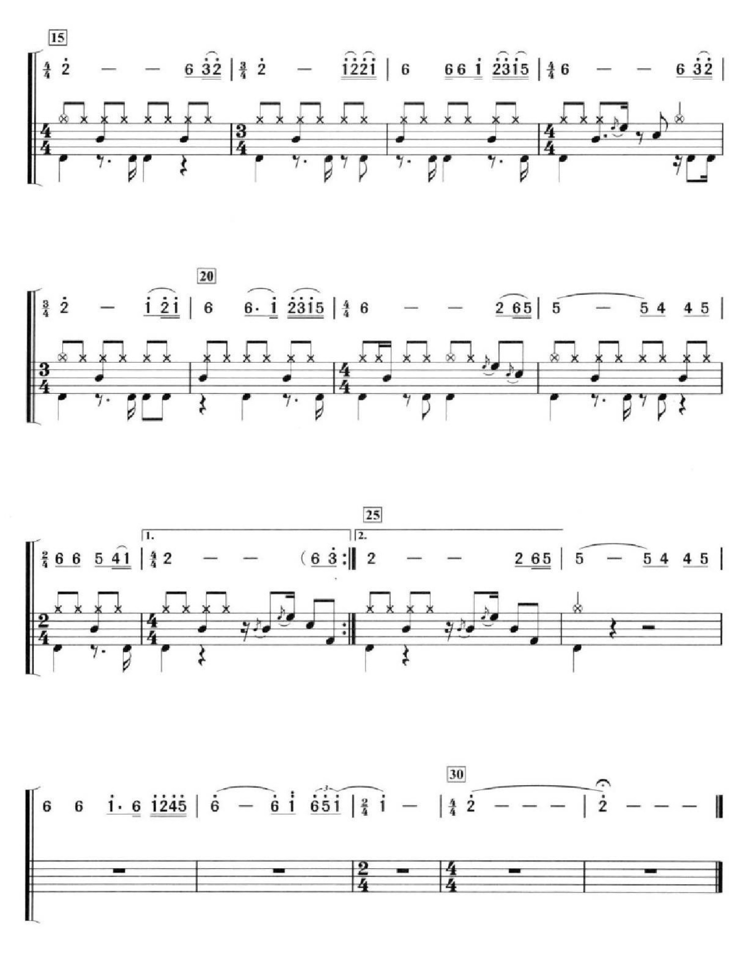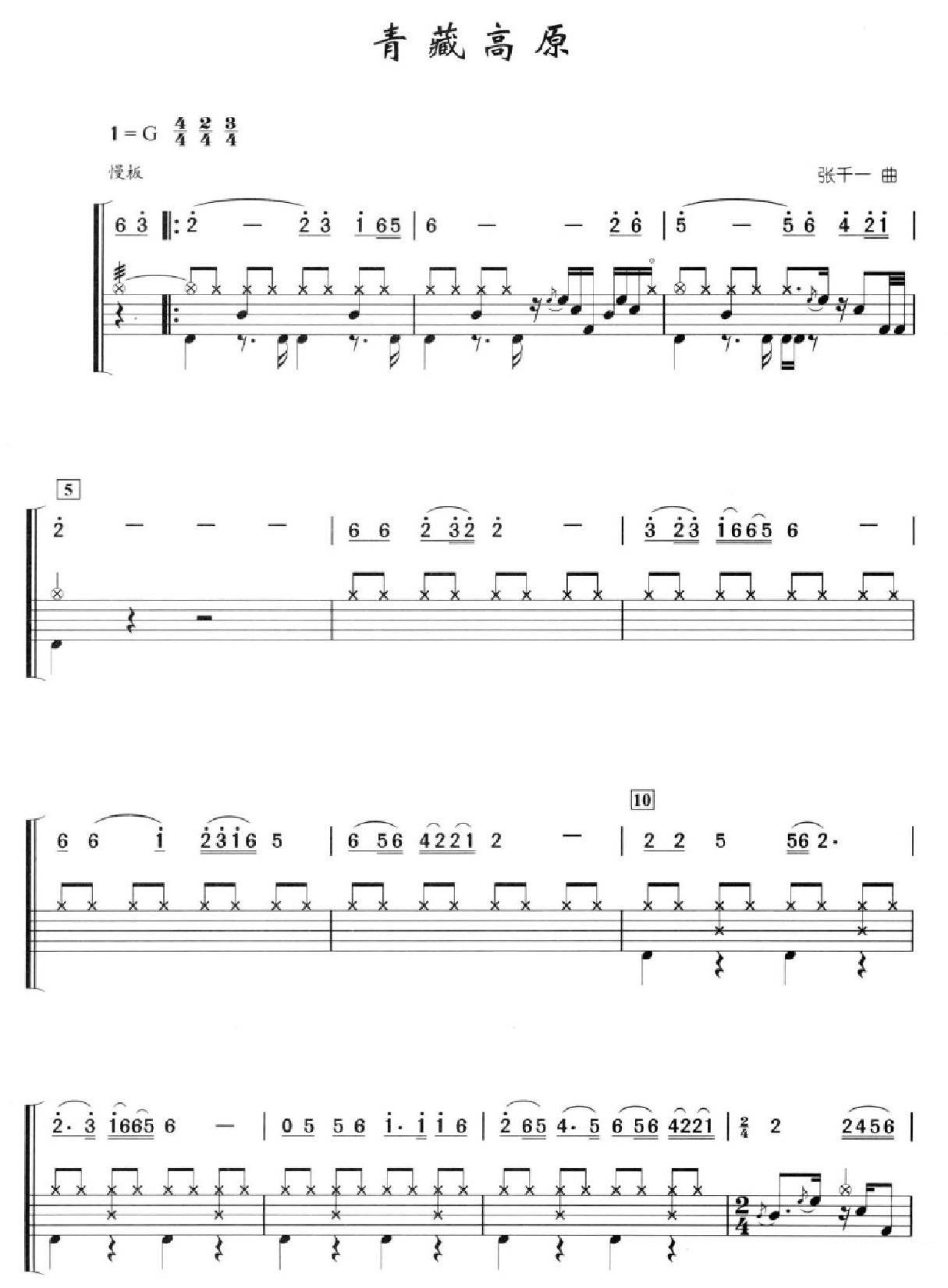 曲谱介绍: 青藏高原(架子鼓谱)