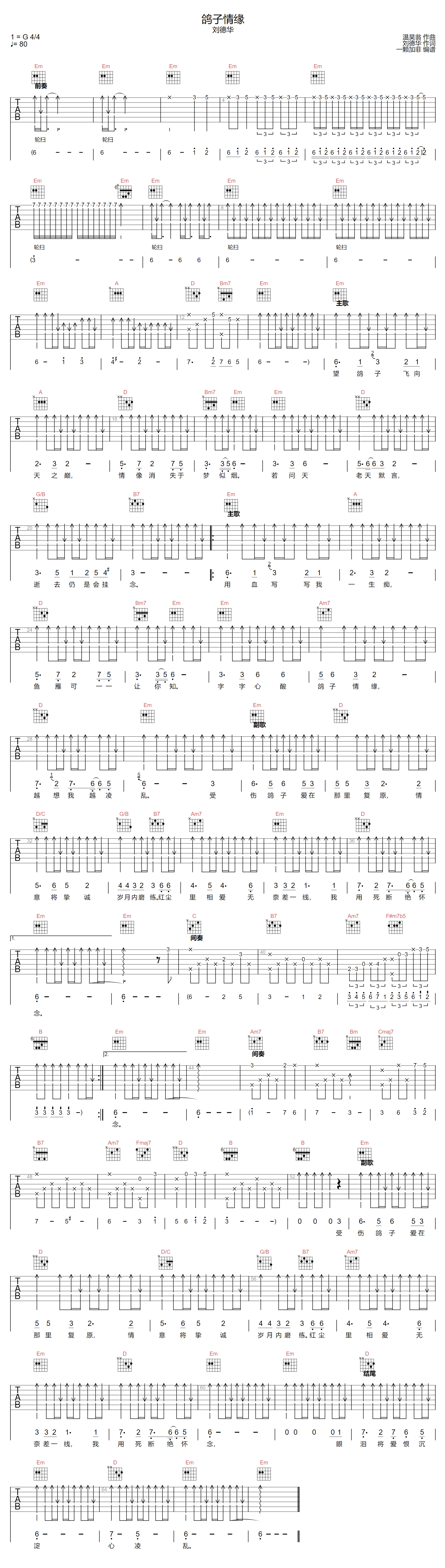 当前位置:琴谱网>吉他弹唱>鸽子情缘