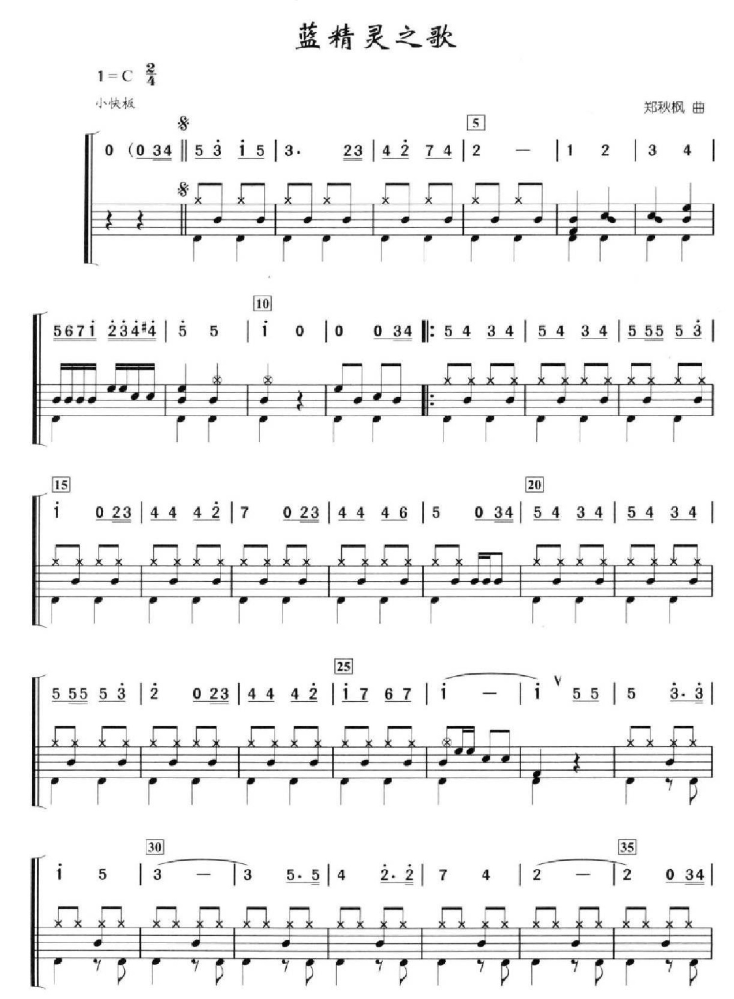 曲谱介绍: 蓝精灵之歌(架子鼓谱)