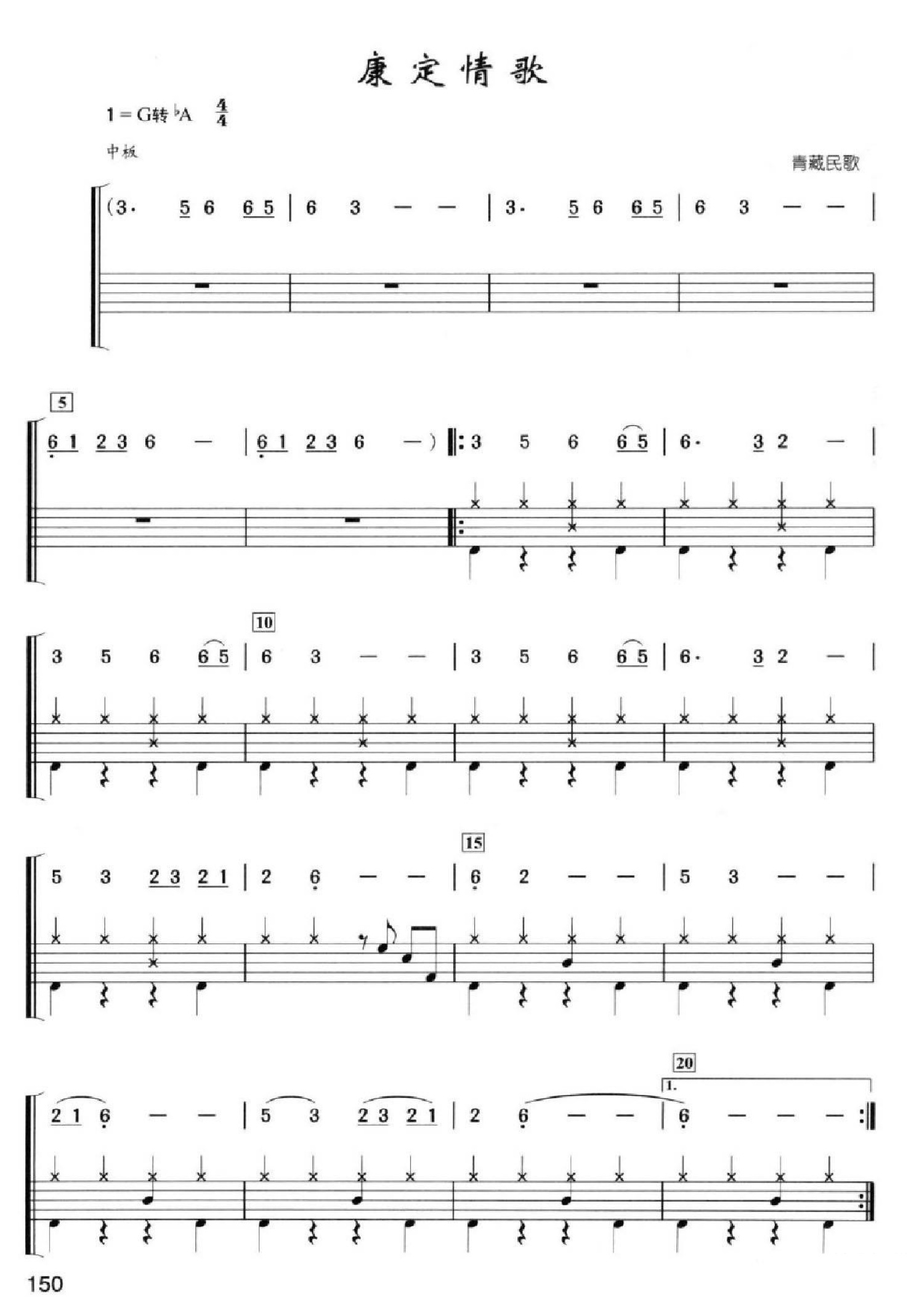 曲谱介绍: 康定情歌(架子鼓谱)