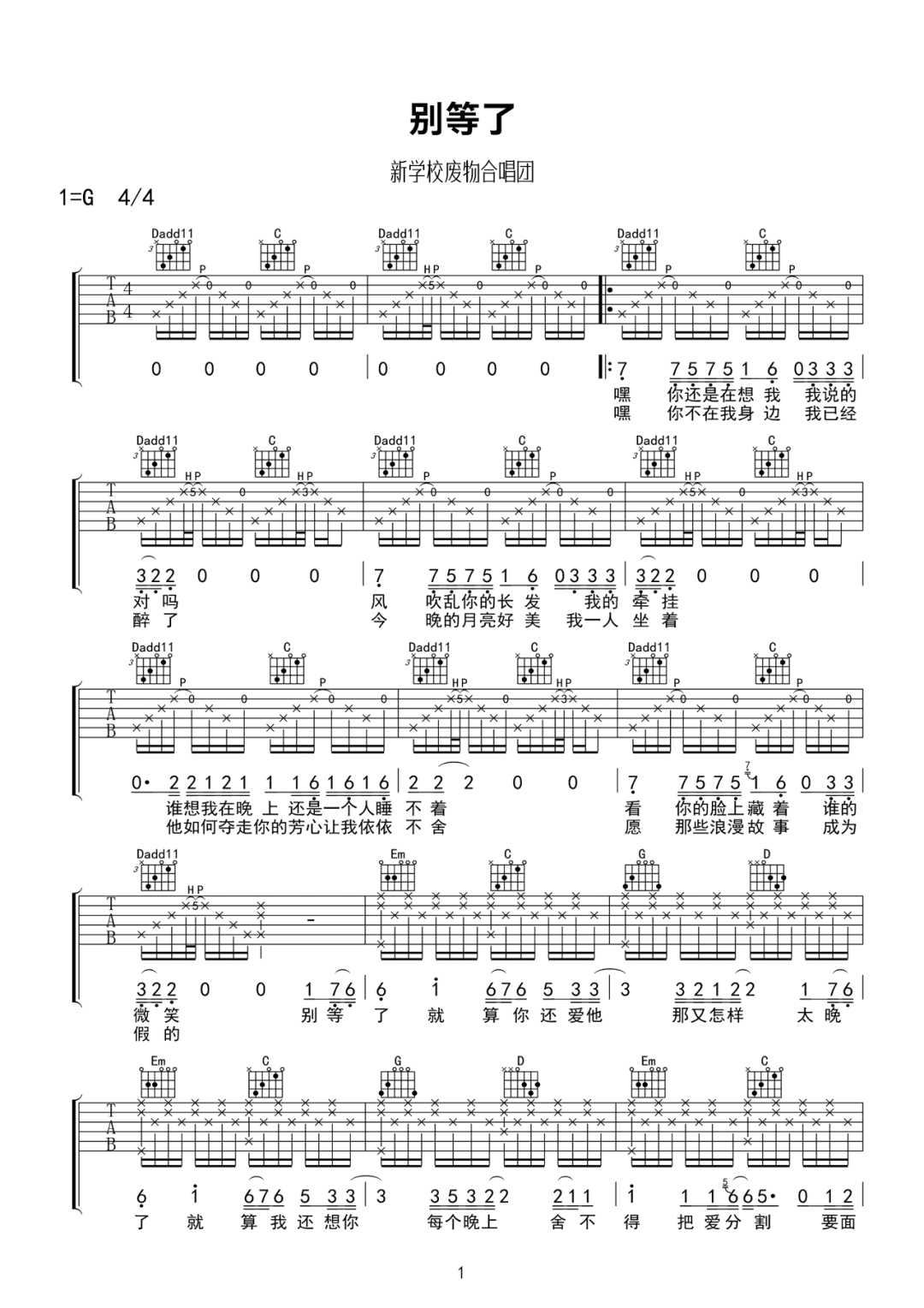 别等了吉他谱 - 新学校废物合唱团 - G调吉他弹唱谱 - 原版