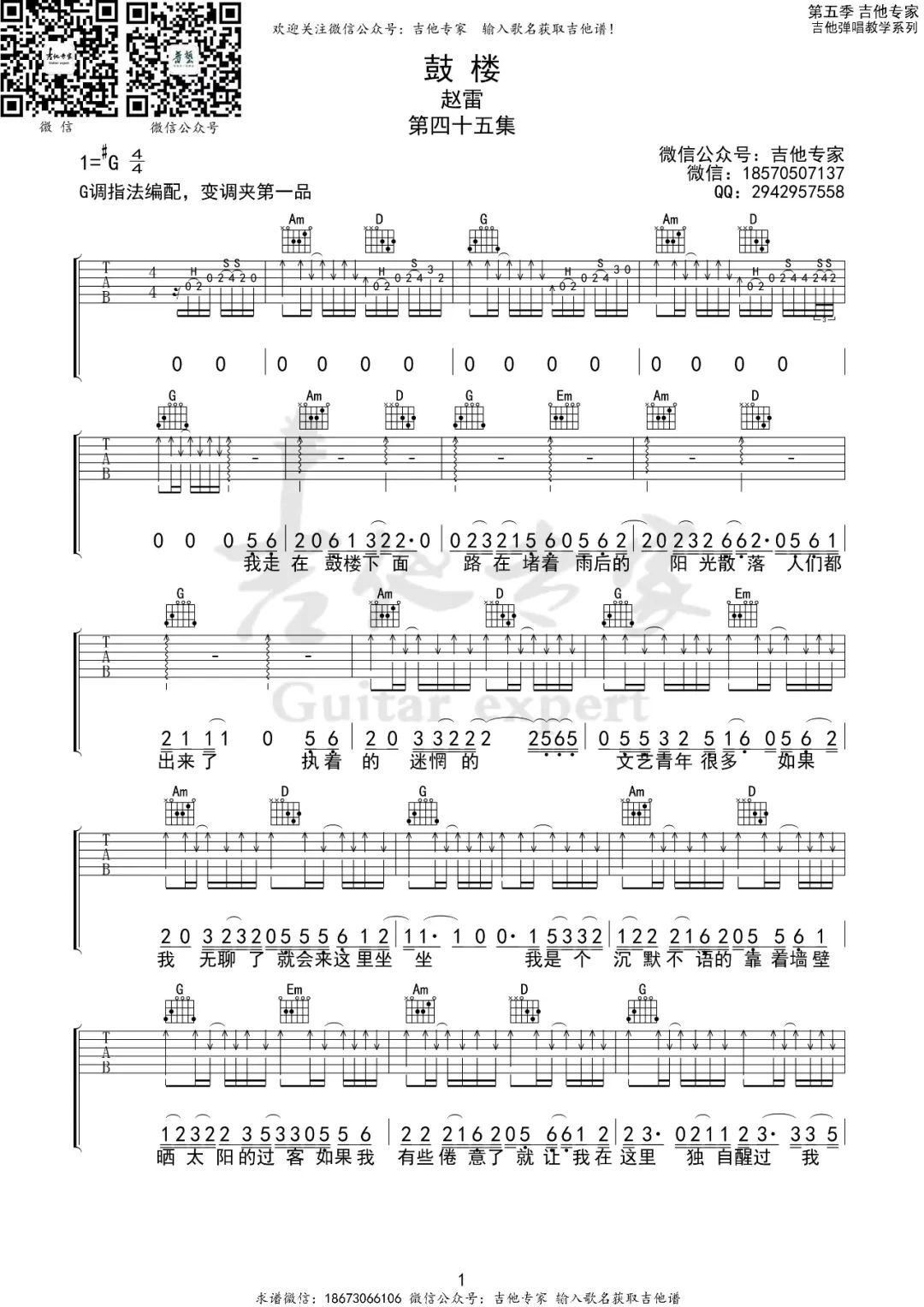当前位置:琴谱网>吉他弹唱>鼓楼