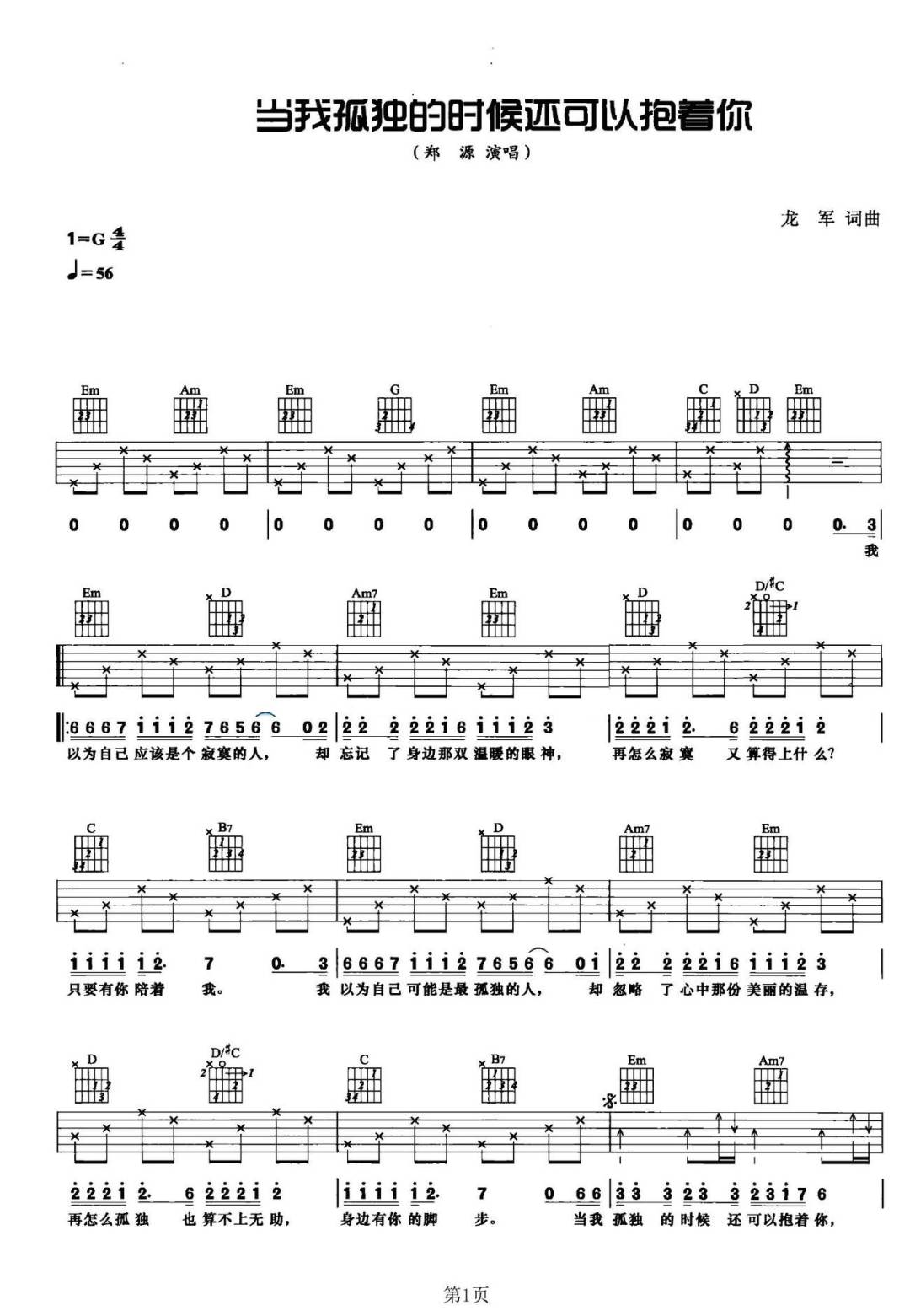 当我孤独的时候还可以抱着你吉他谱 - 郑源 - G调吉他弹唱谱