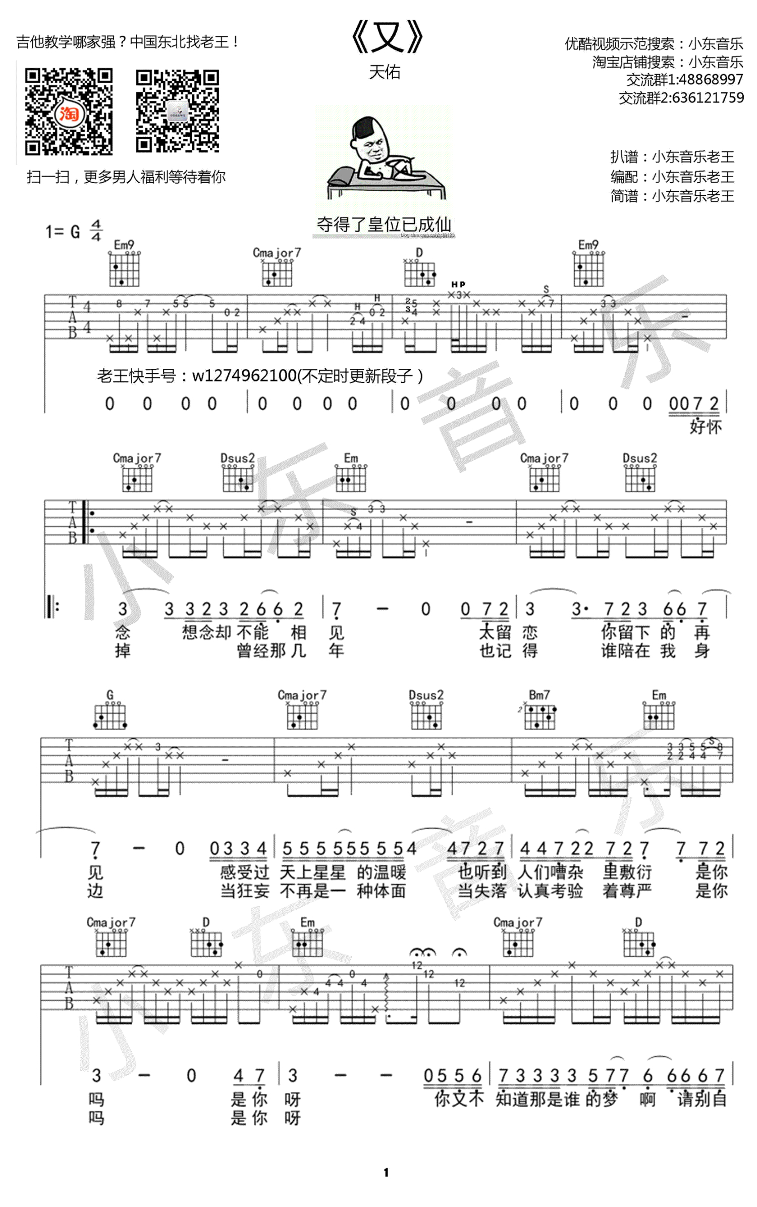 又吉他谱 - 天佑 - G调吉他弹唱谱