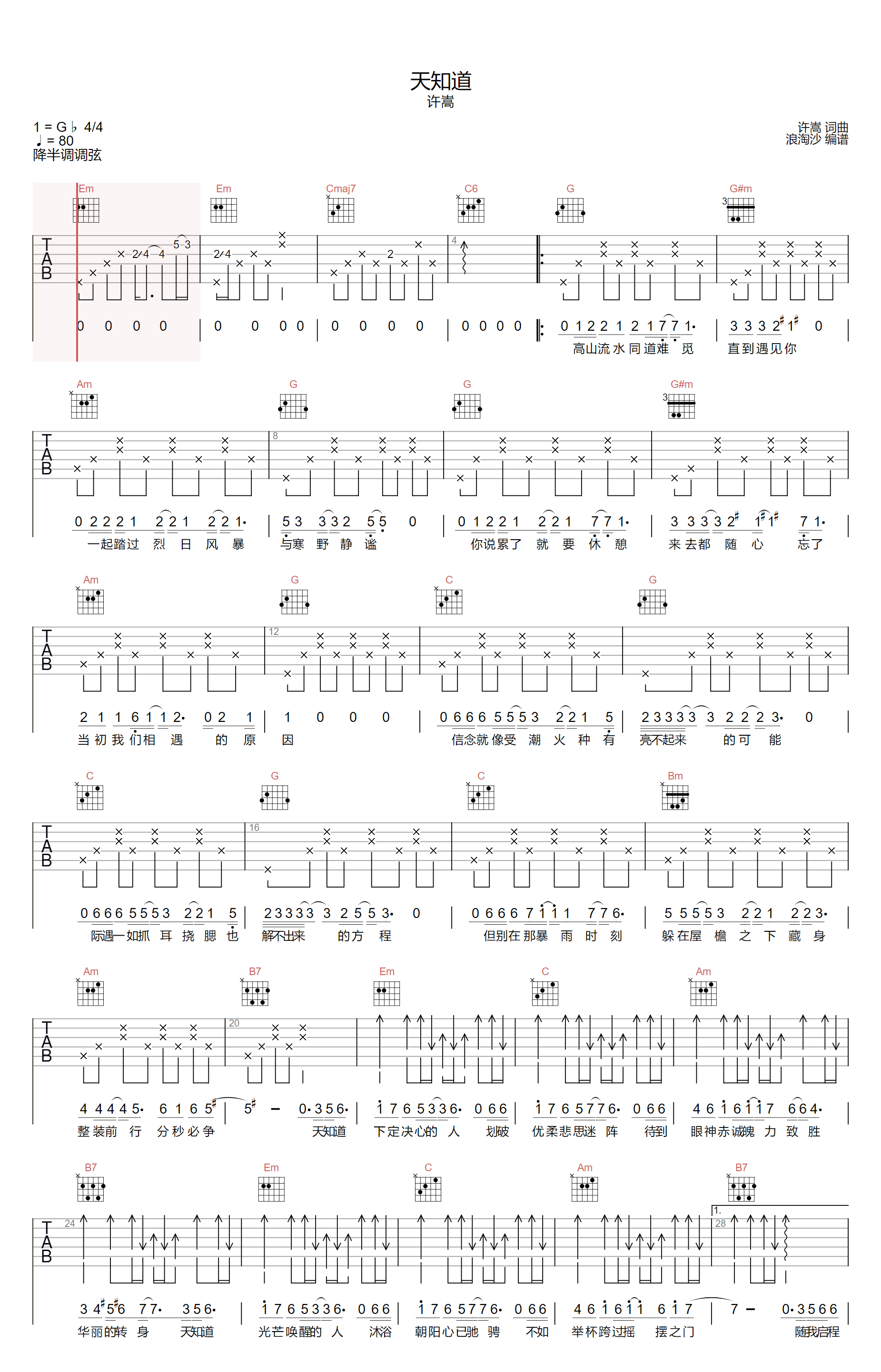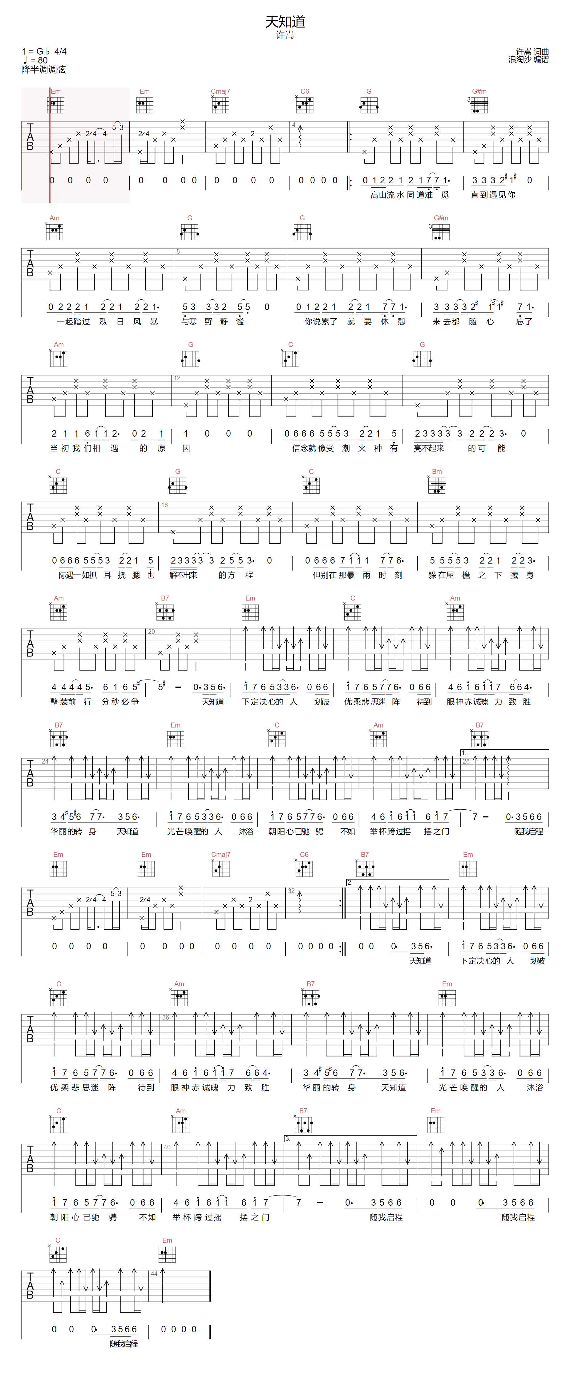 天知道吉他谱 - 许嵩 - G调吉他弹唱谱 - 原版