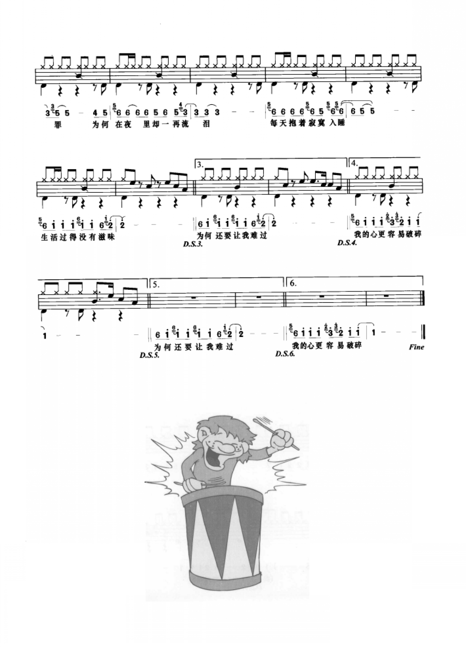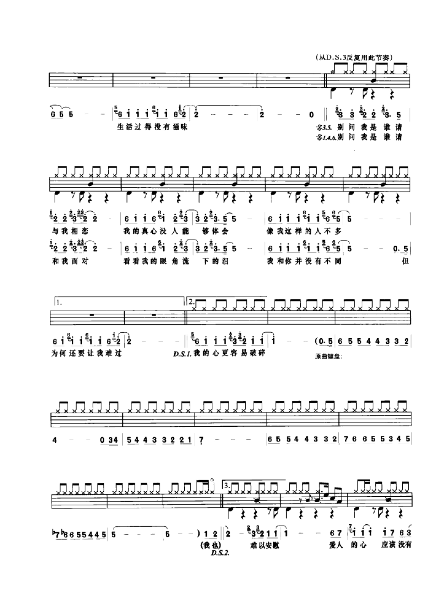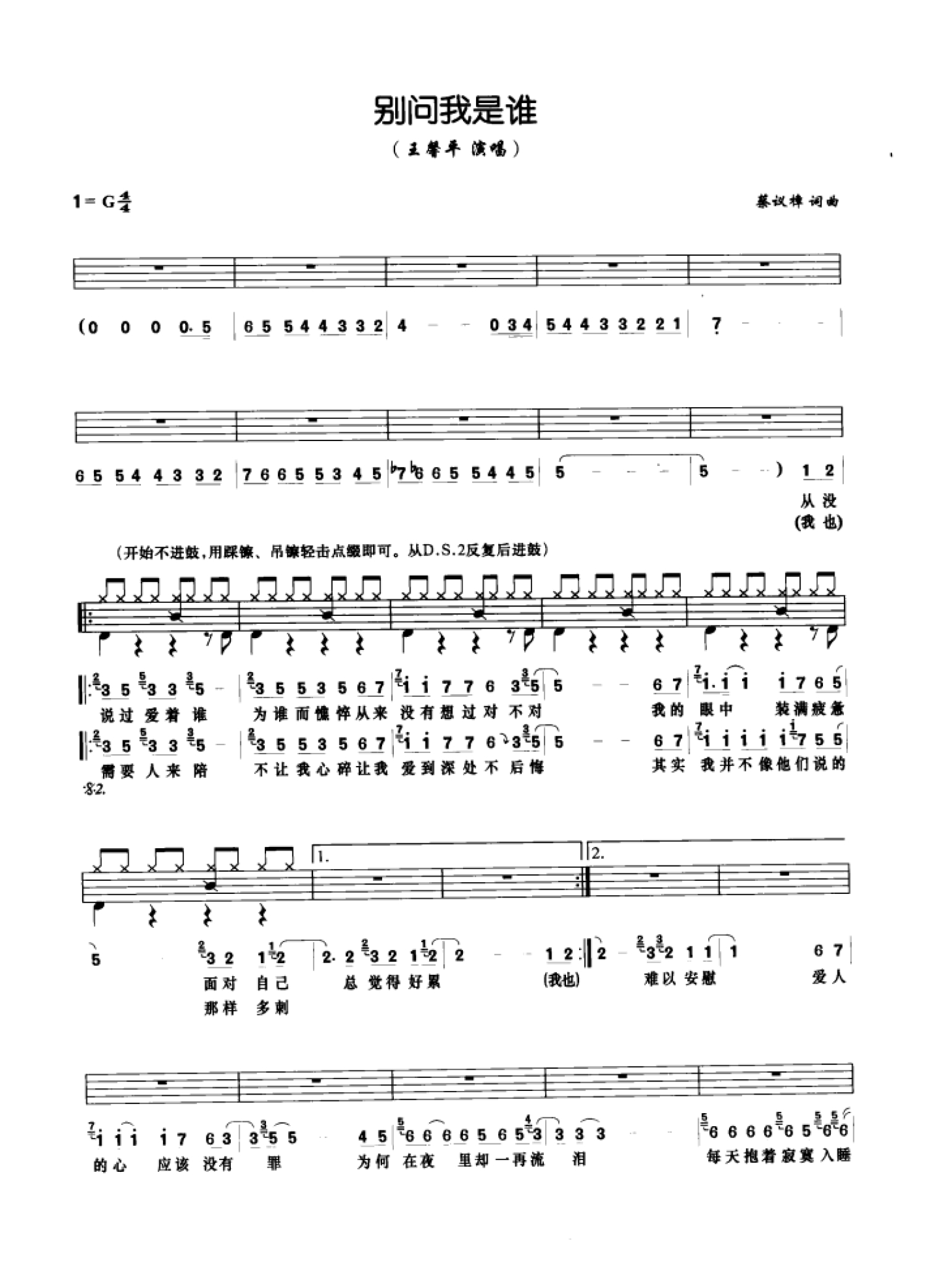 曲谱介绍: 别问我是谁(架子鼓谱)