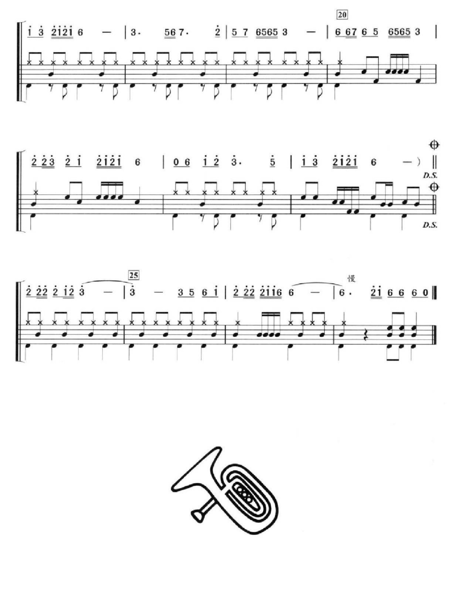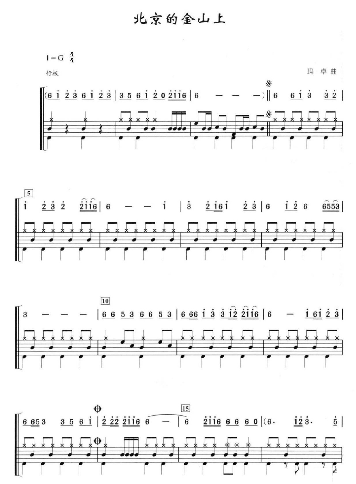 曲谱介绍: 北京的金山上(架子鼓谱)