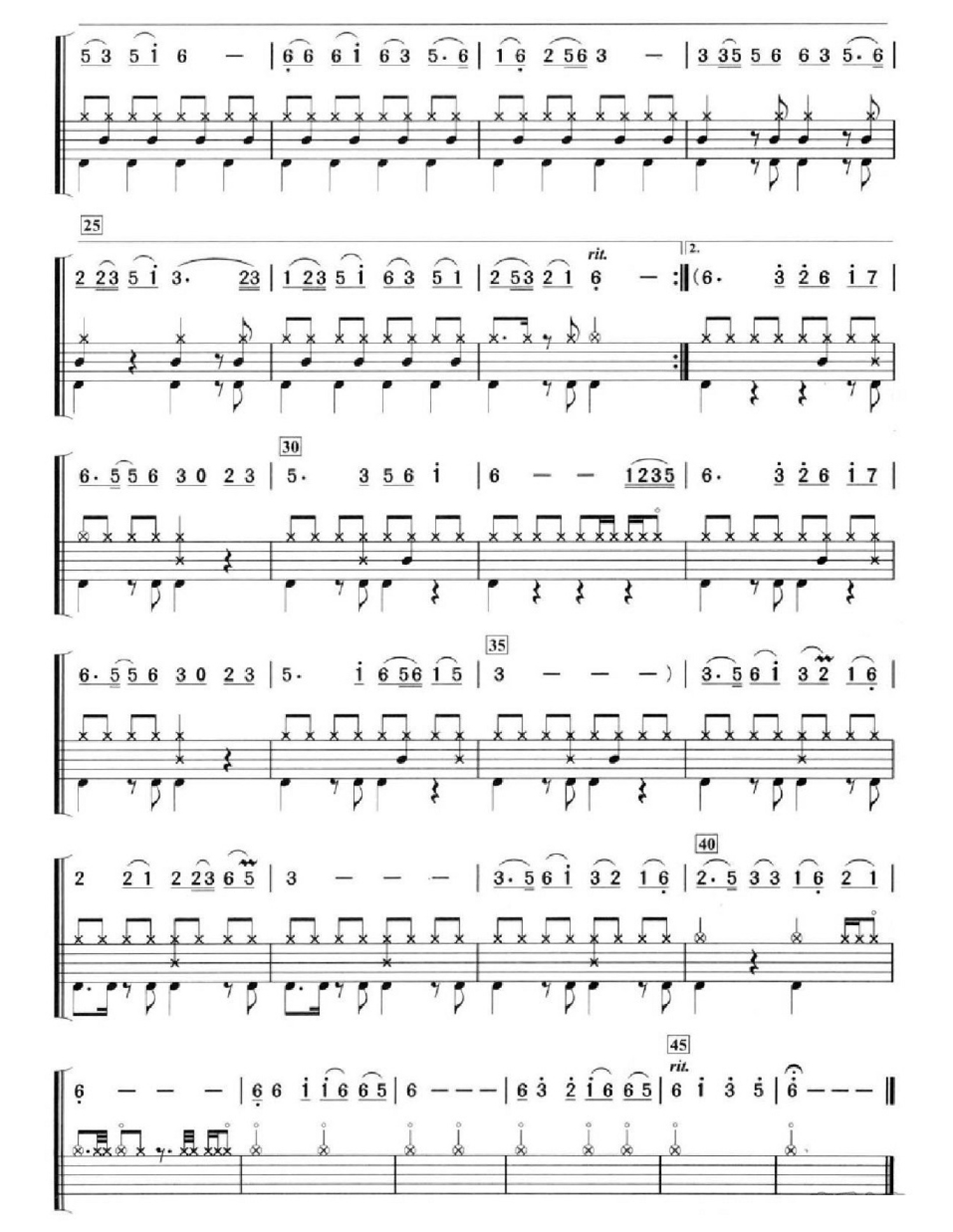 曲谱介绍: 敖包相会(架子鼓谱)