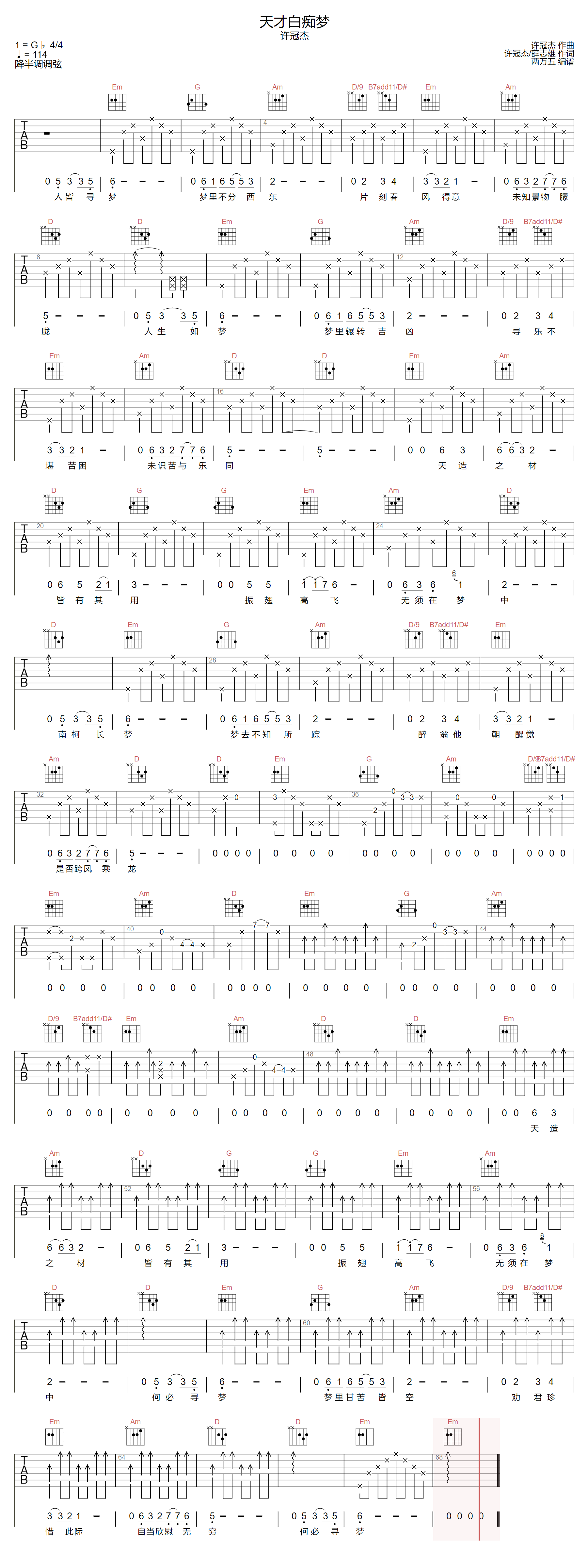 当前位置:琴谱网>吉他弹唱>天才白痴梦