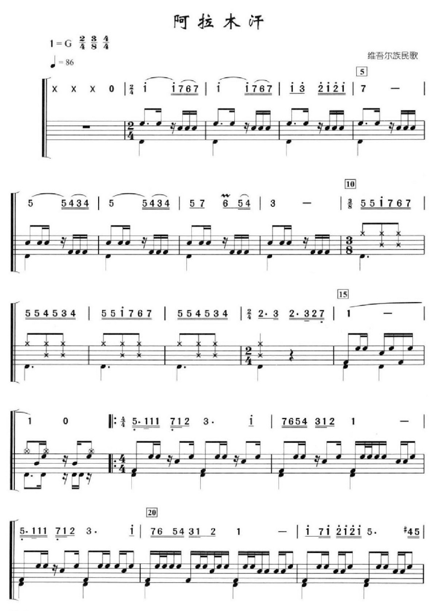 曲谱介绍: 阿拉木汗(架子鼓谱)