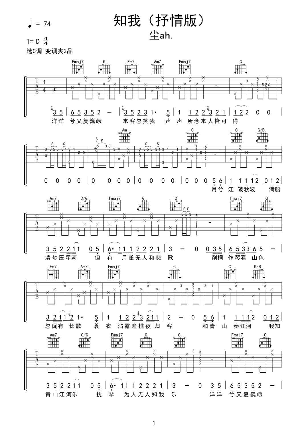 知我吉他谱 - 尘ah - C调吉他弹唱谱 - 原版
