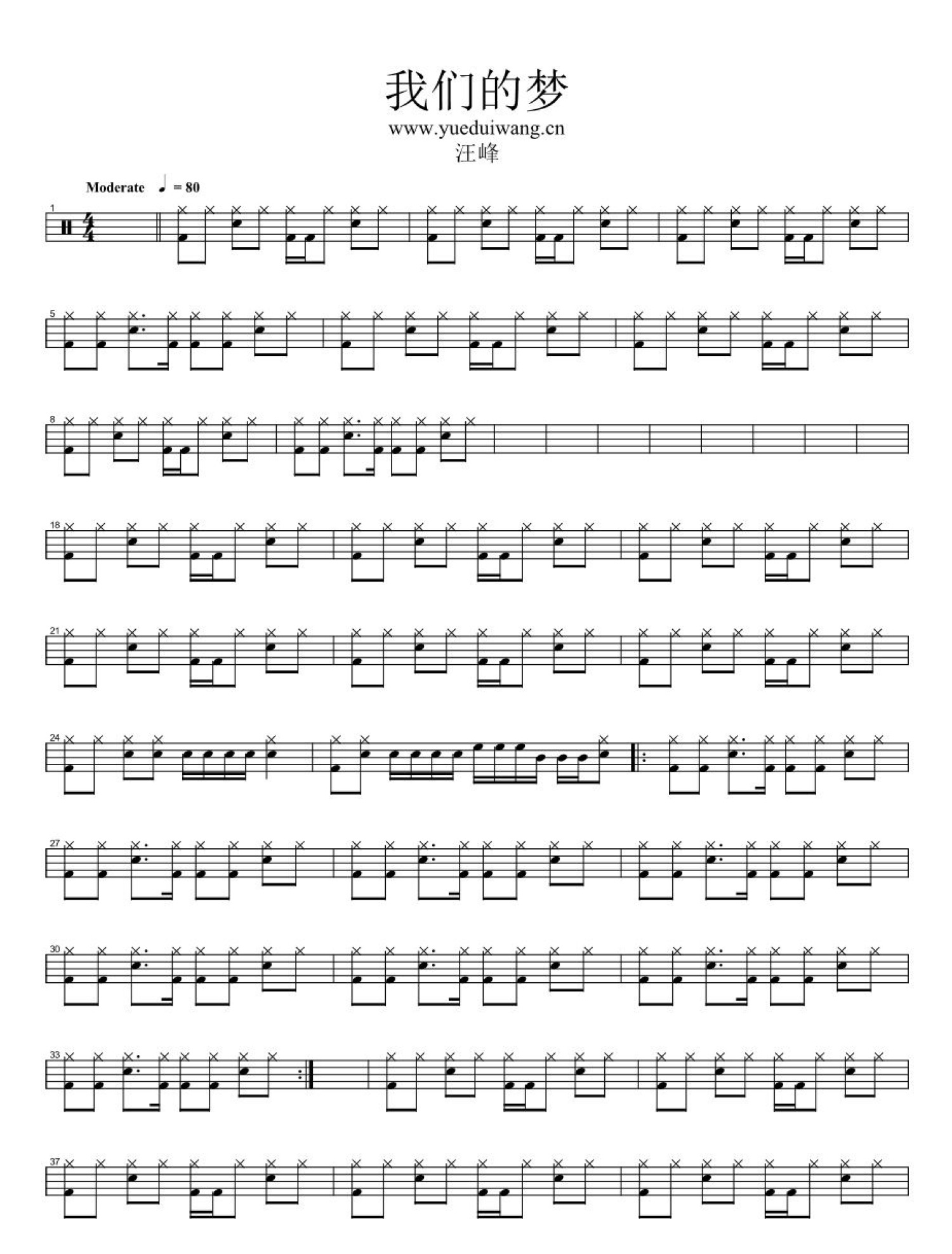 我们的梦鼓谱 - 汪峰 - 架子鼓谱