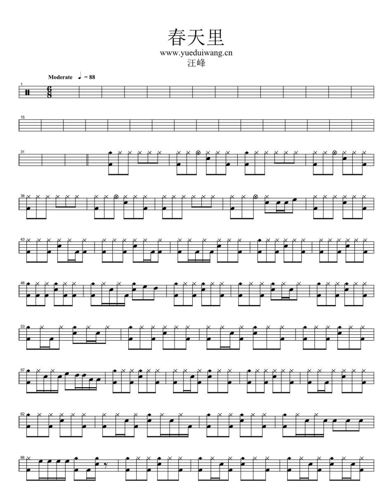 曲谱介绍: 春天里((架子鼓谱)-汪峰