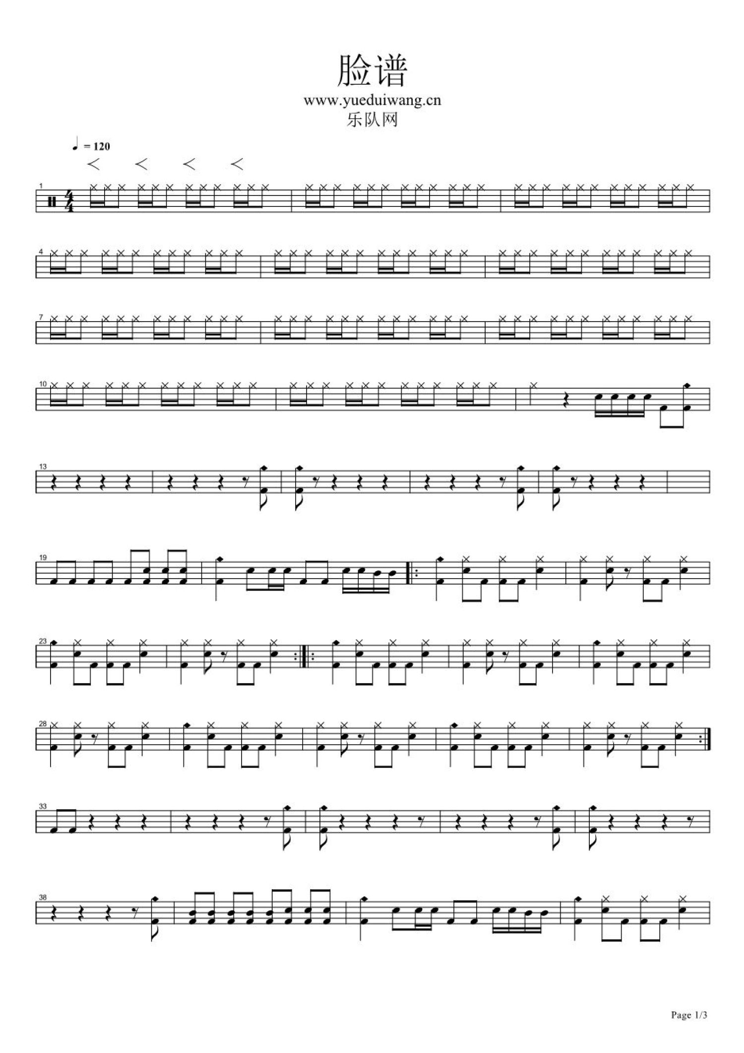 曲谱介绍: 脸谱(架子鼓谱)-黑豹乐队