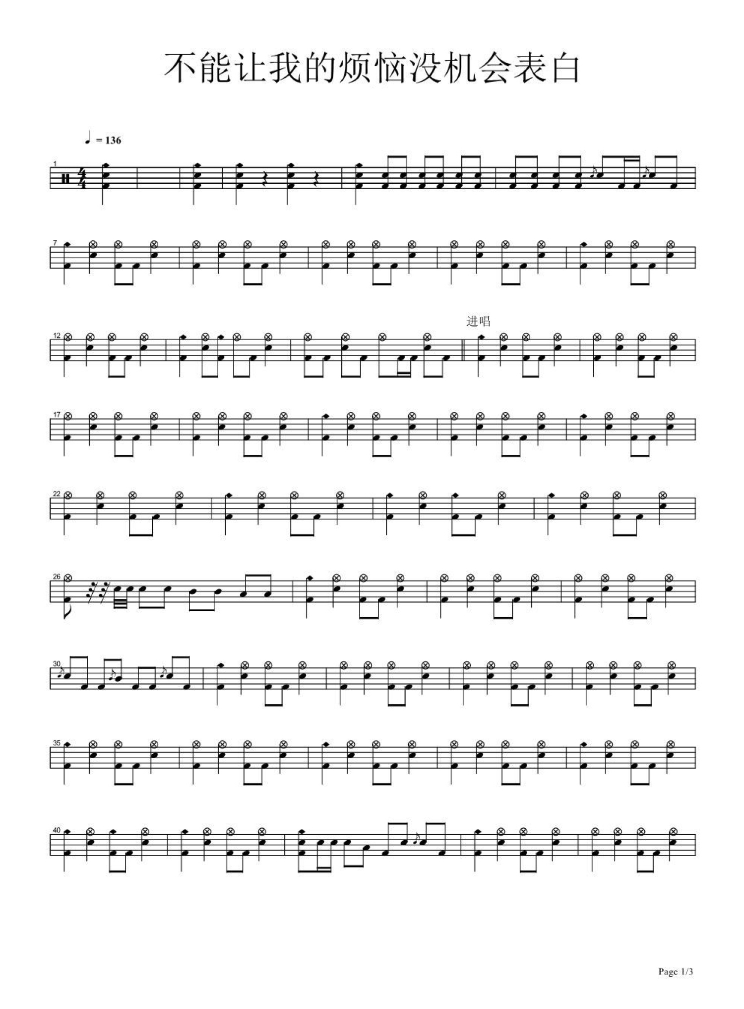 曲谱介绍: 不能让我的烦恼没机会表白(架子鼓谱)-黑豹乐队