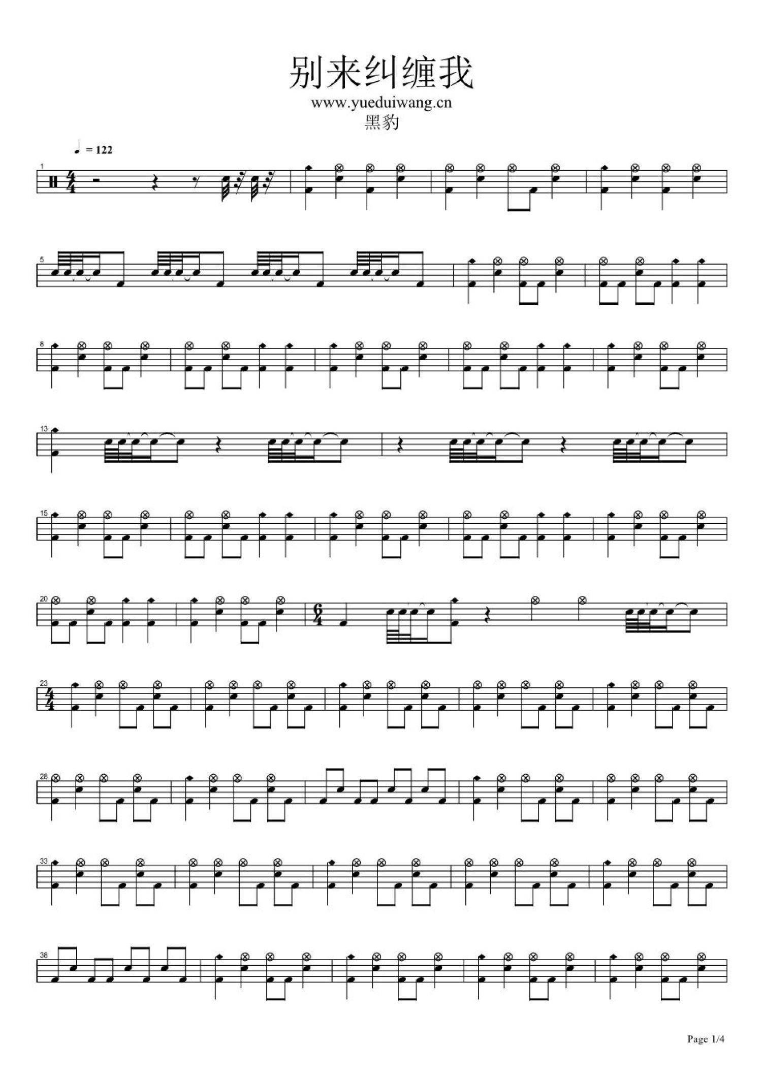 别来纠缠我鼓谱 - 黑豹乐队 - 架子鼓谱