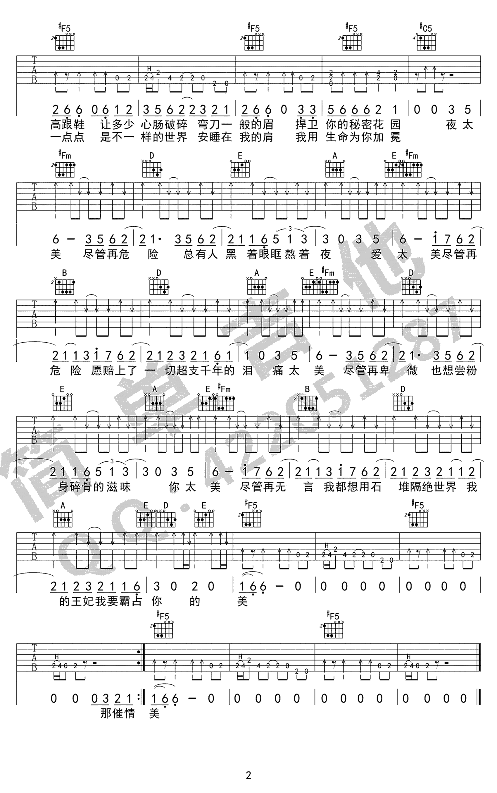 曲谱介绍: 萧敬腾演唱的一首歌曲,4/4拍的节奏,这首歌曲的原调为A调,这里曲谱采用了A调指法进行编配,演唱时可不夹变调夹,曲谱由琴谱网更新上传,来源于@简单吉他编配出品。这首歌定位为摇滚,以跳脱激情澎湃的旋律开嗓,整首歌曲的伴奏非常带感,但最令人惊喜的地方是萧敬腾那略显沙哑的摇滚风嗓音,真的非常好听。