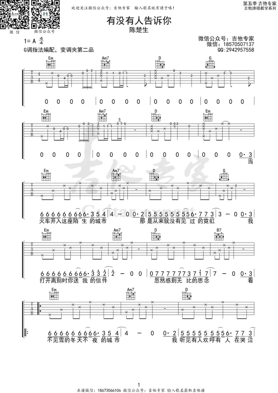 有没有人告诉你吉他谱 - 陈楚生 - G调吉他弹唱谱 - 原版