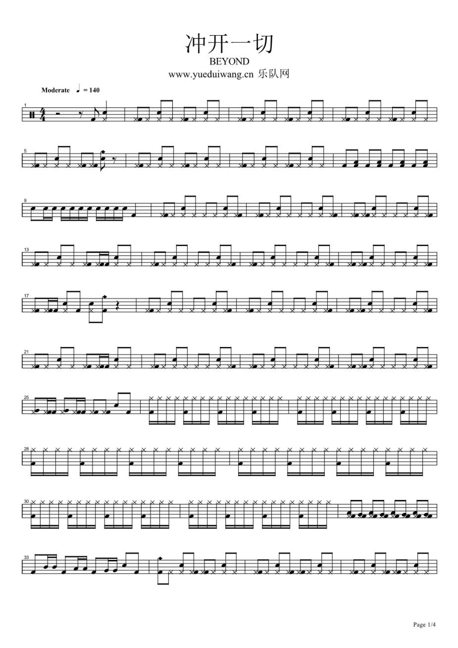 冲开一切鼓谱 - Beyond - 架子鼓谱