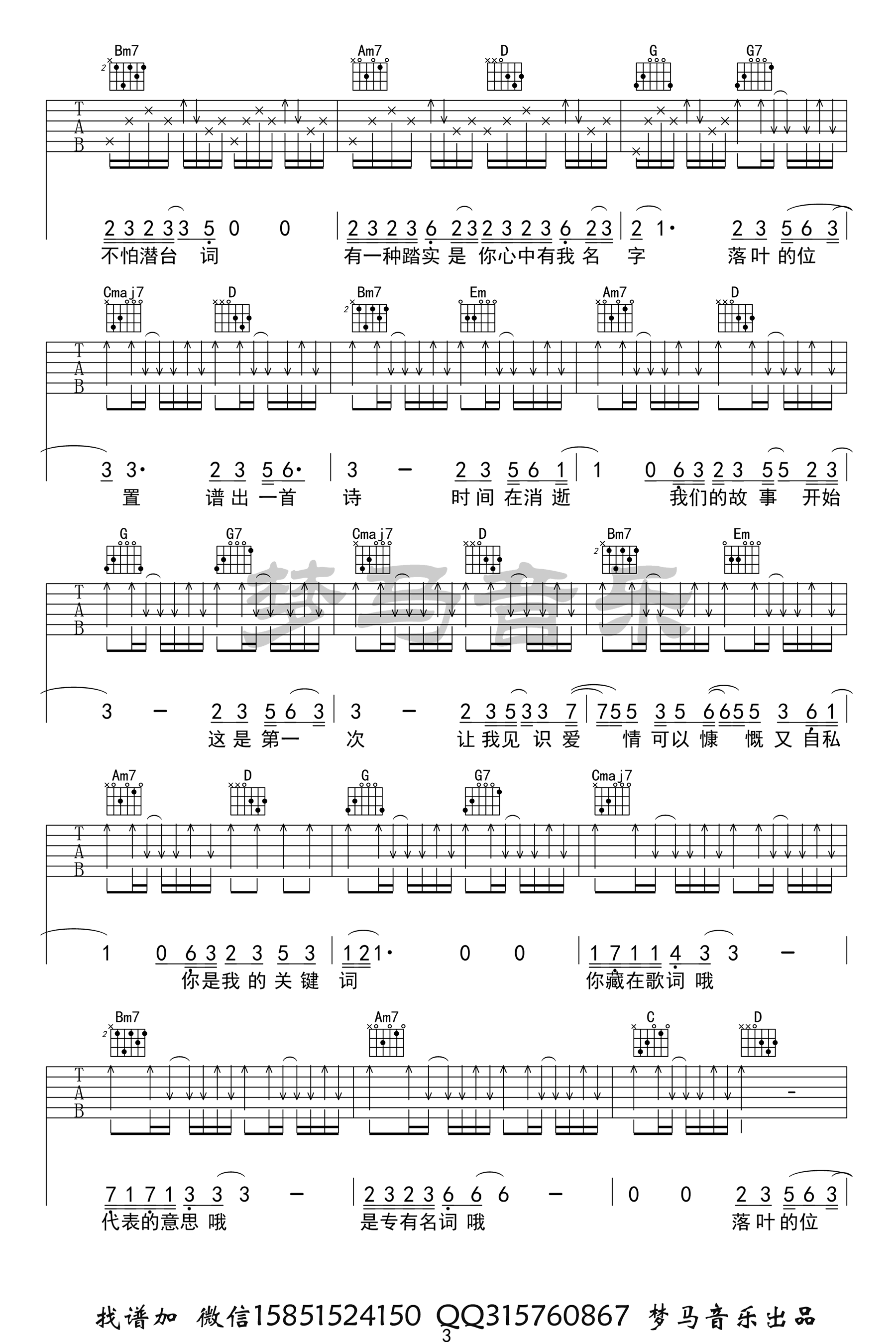 关键词吉他谱 - 林俊杰 - G调吉他弹唱谱 - 原版