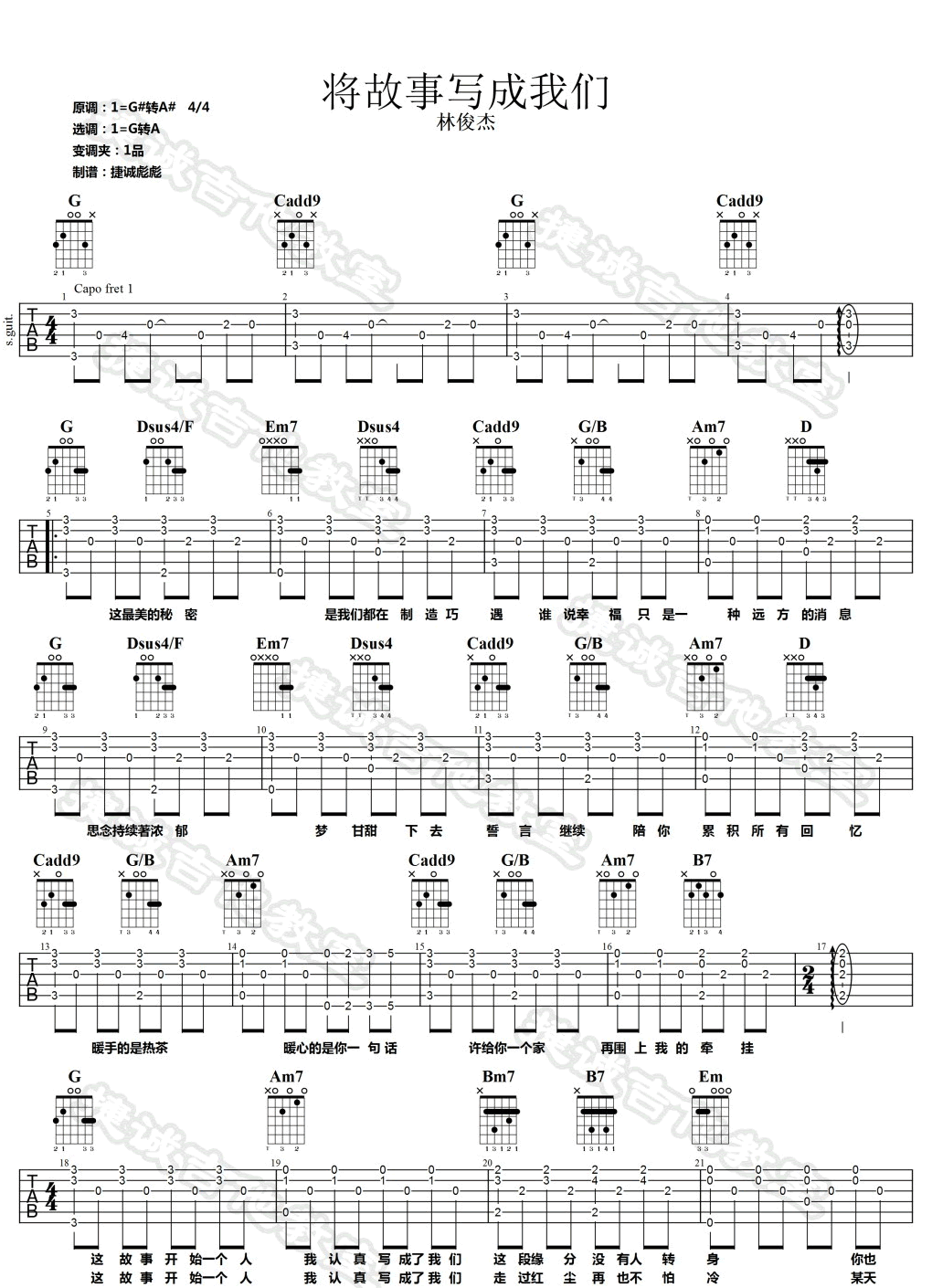 将故事写成我们吉他谱 - 林俊杰 - G调吉他弹唱谱 - 原版