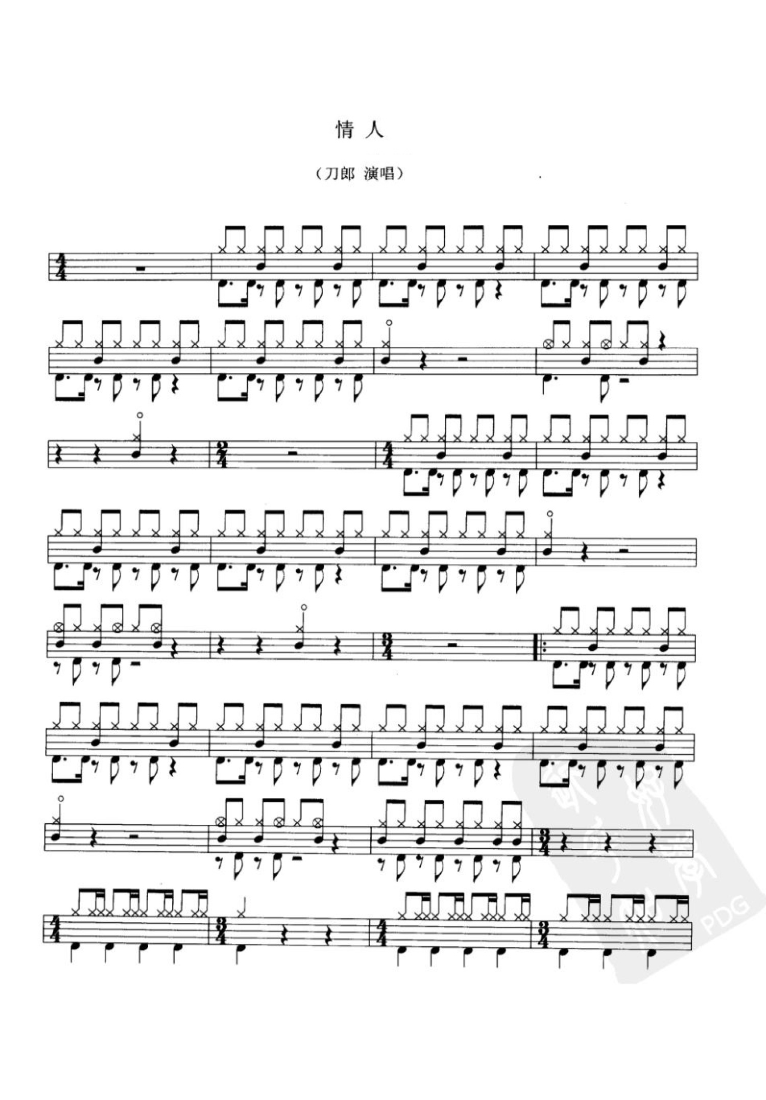 曲谱介绍: 情人(架子鼓谱)-刀郎