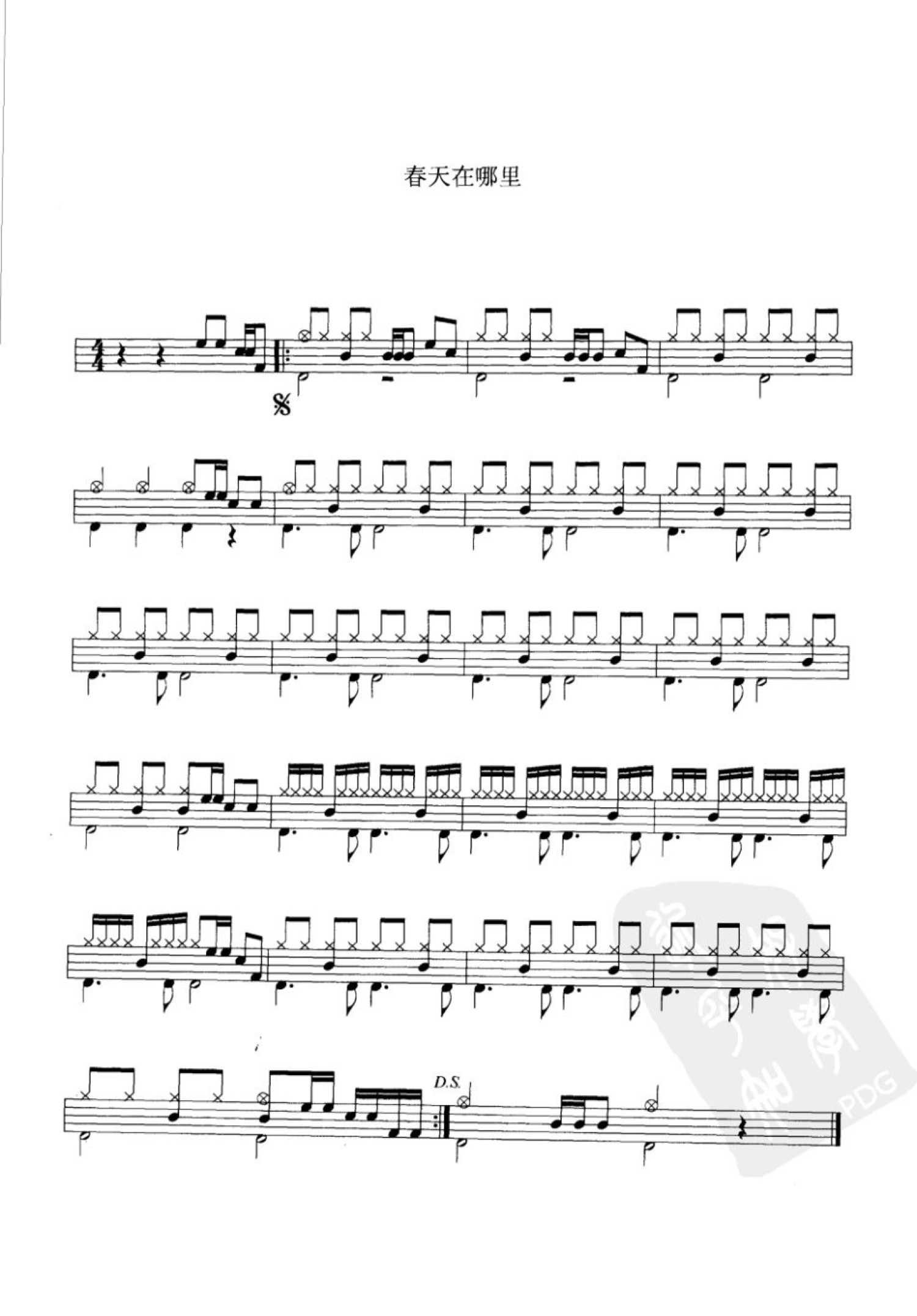 曲谱介绍: 春天在哪里(架子鼓谱)