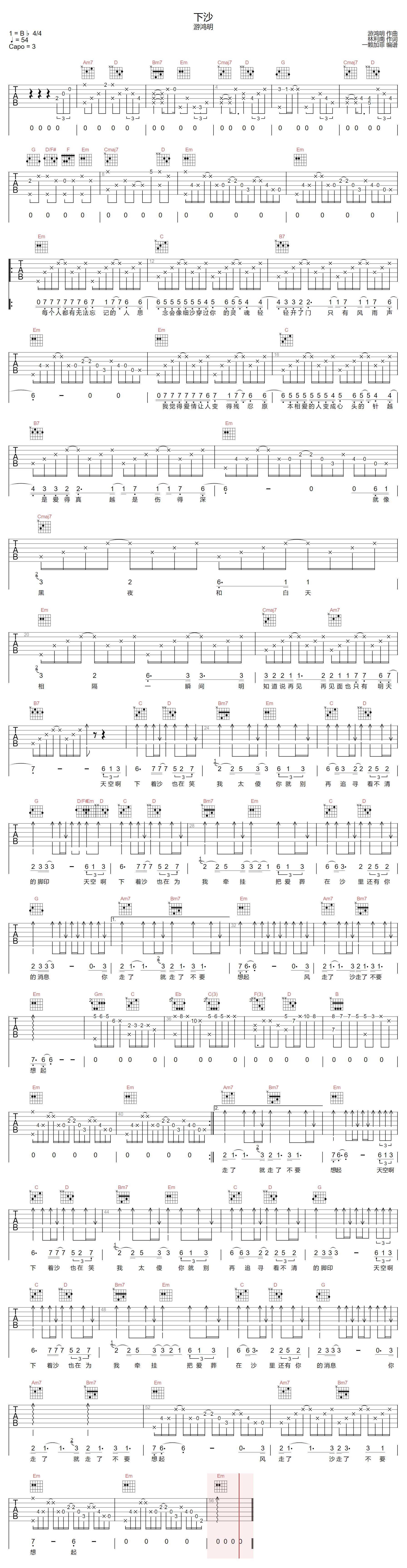 下沙吉他谱 - 游鸿明 - G调吉他弹唱谱 - 原版
