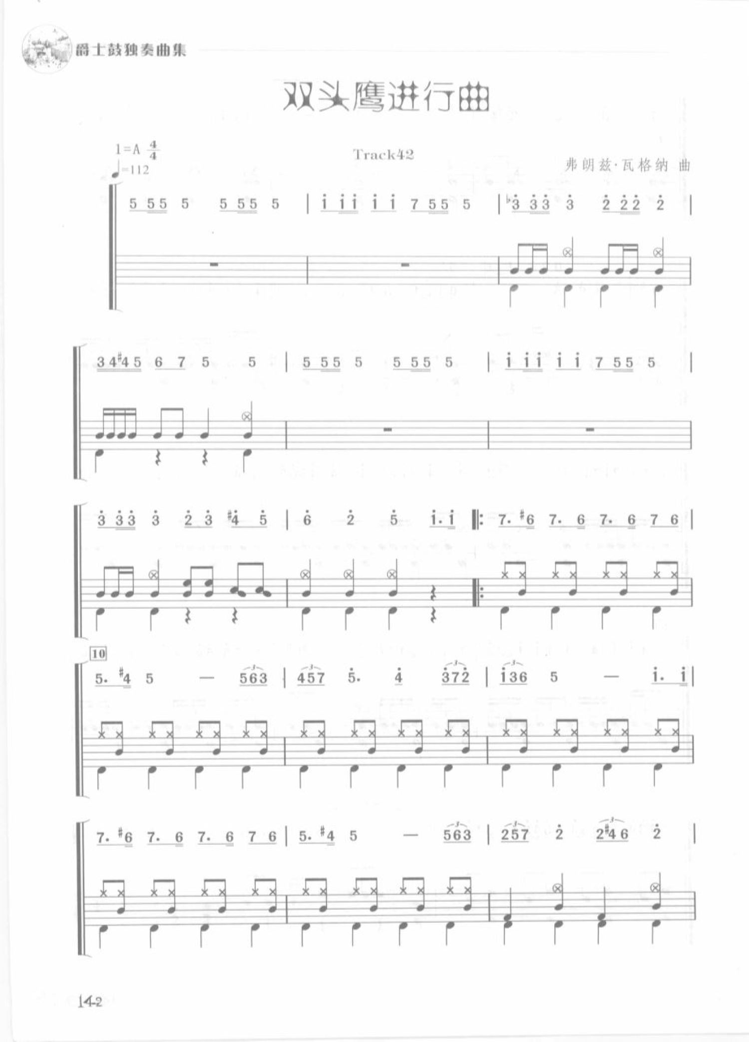 曲谱介绍: 双头鹰进行曲(架子鼓谱)