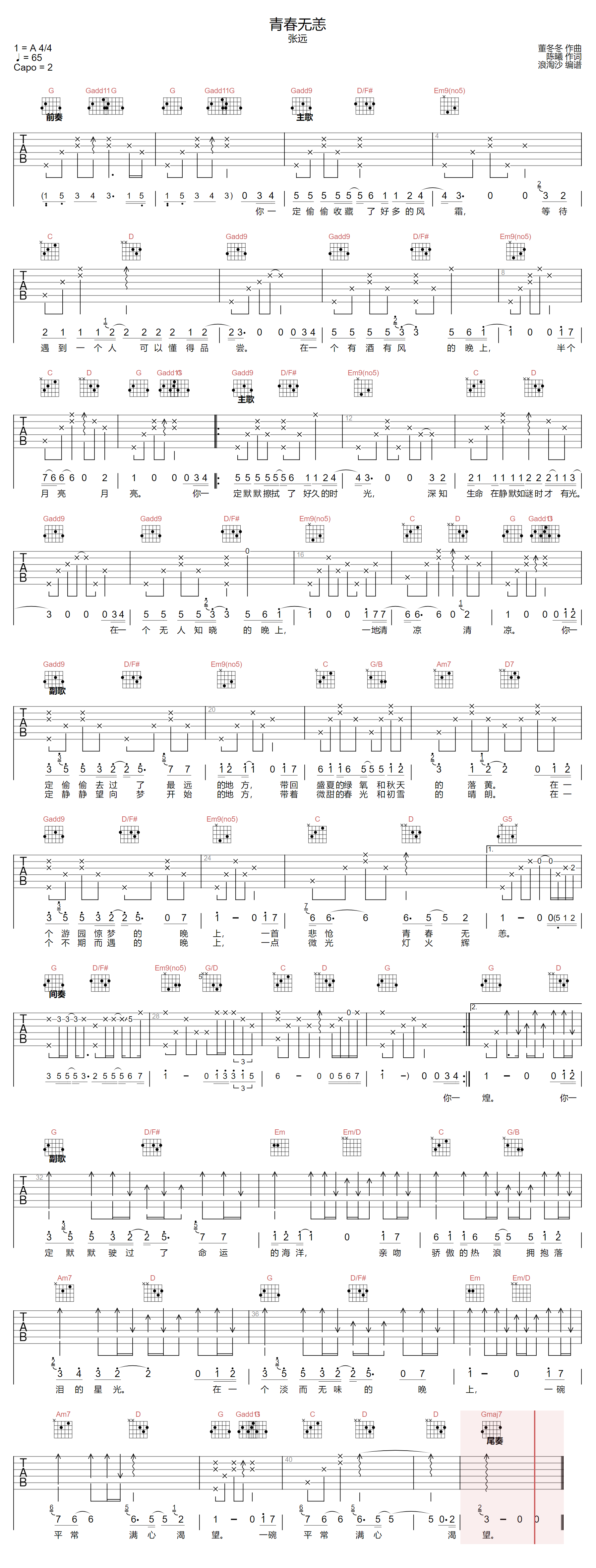青春无恙吉他谱 - 张远 - G调吉他弹唱谱 - 原版