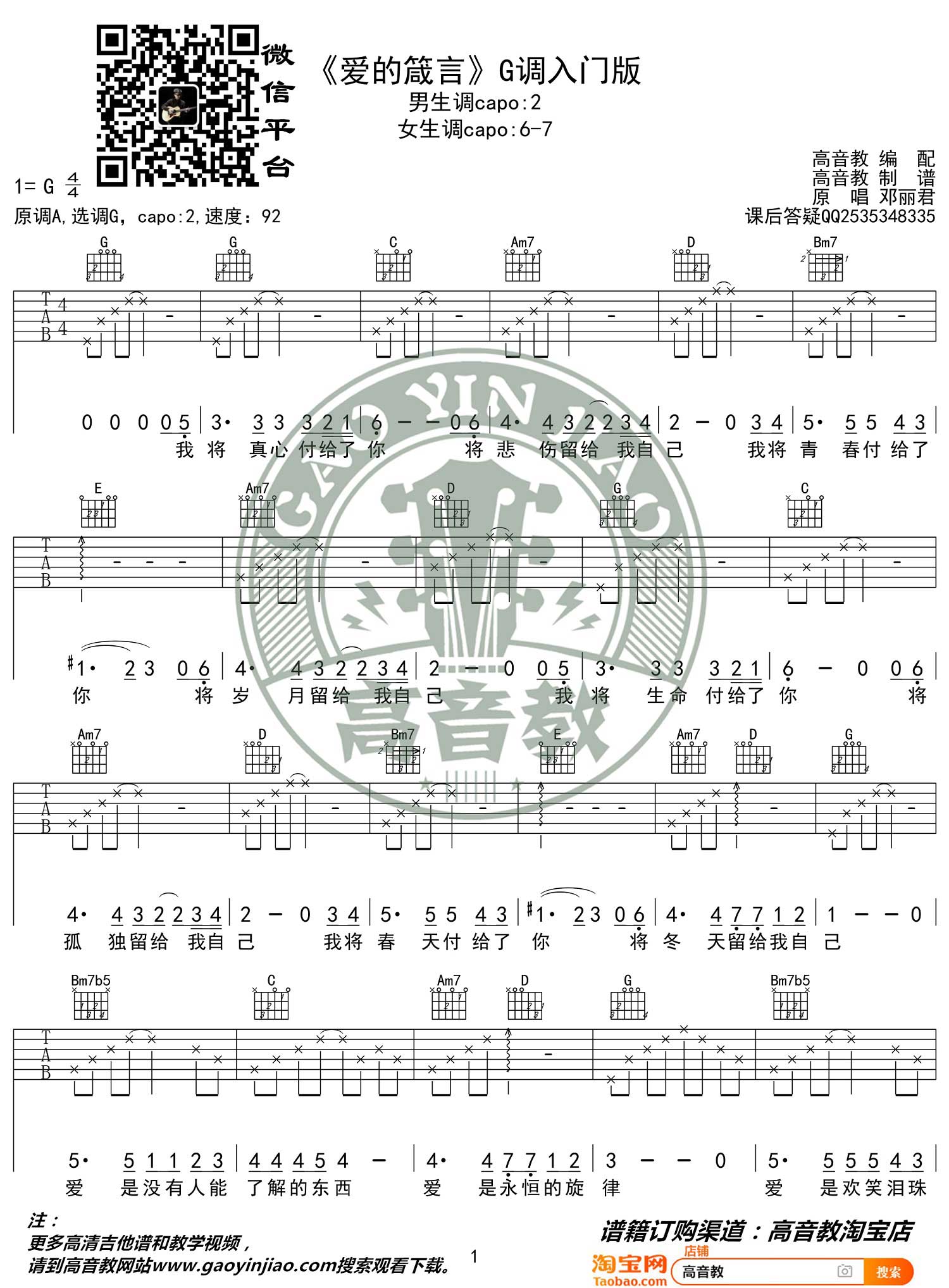 当前位置:琴谱网>吉他弹唱>爱的箴言