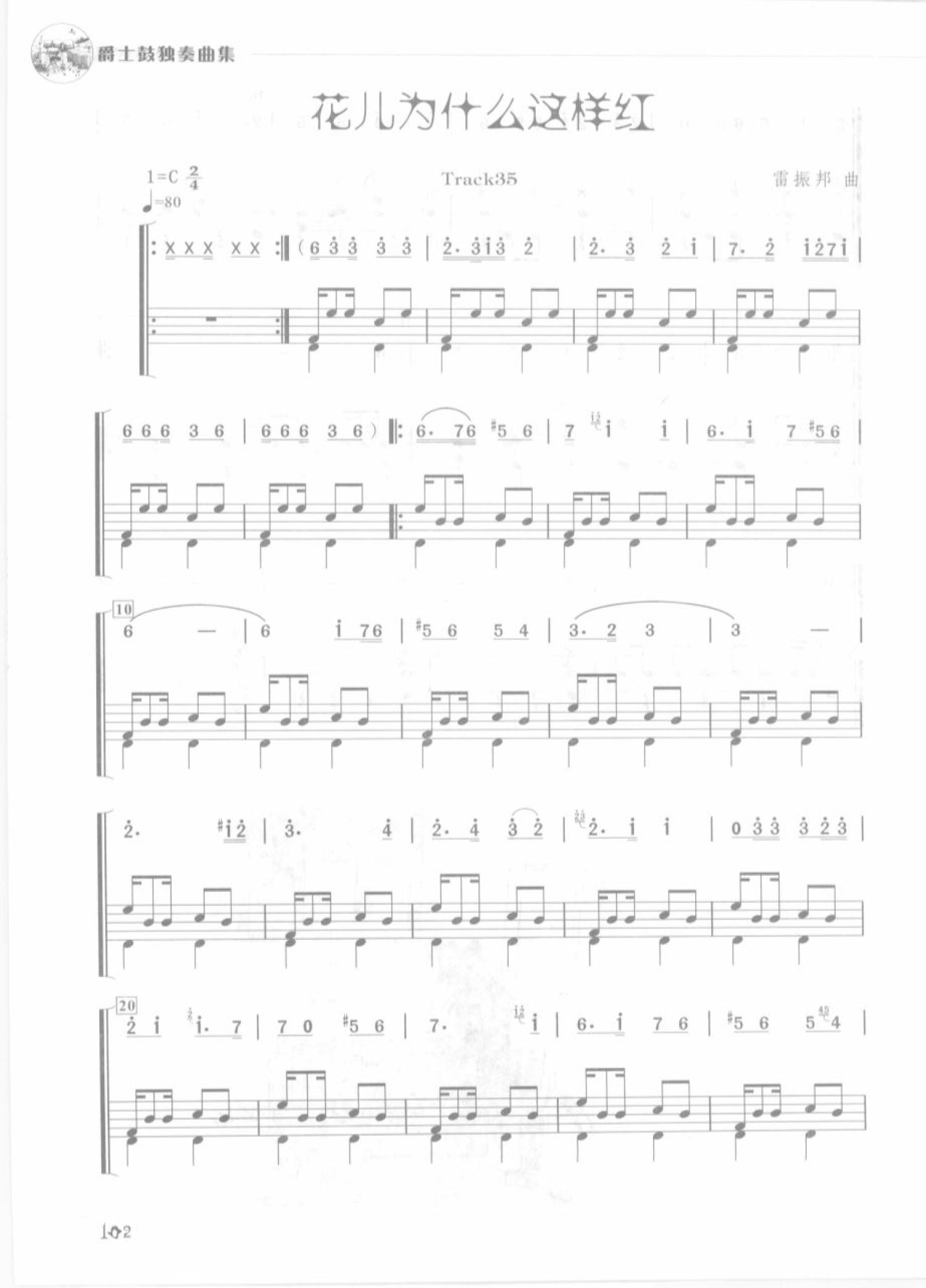 曲谱介绍: 花儿为什么这样红(架子鼓谱)