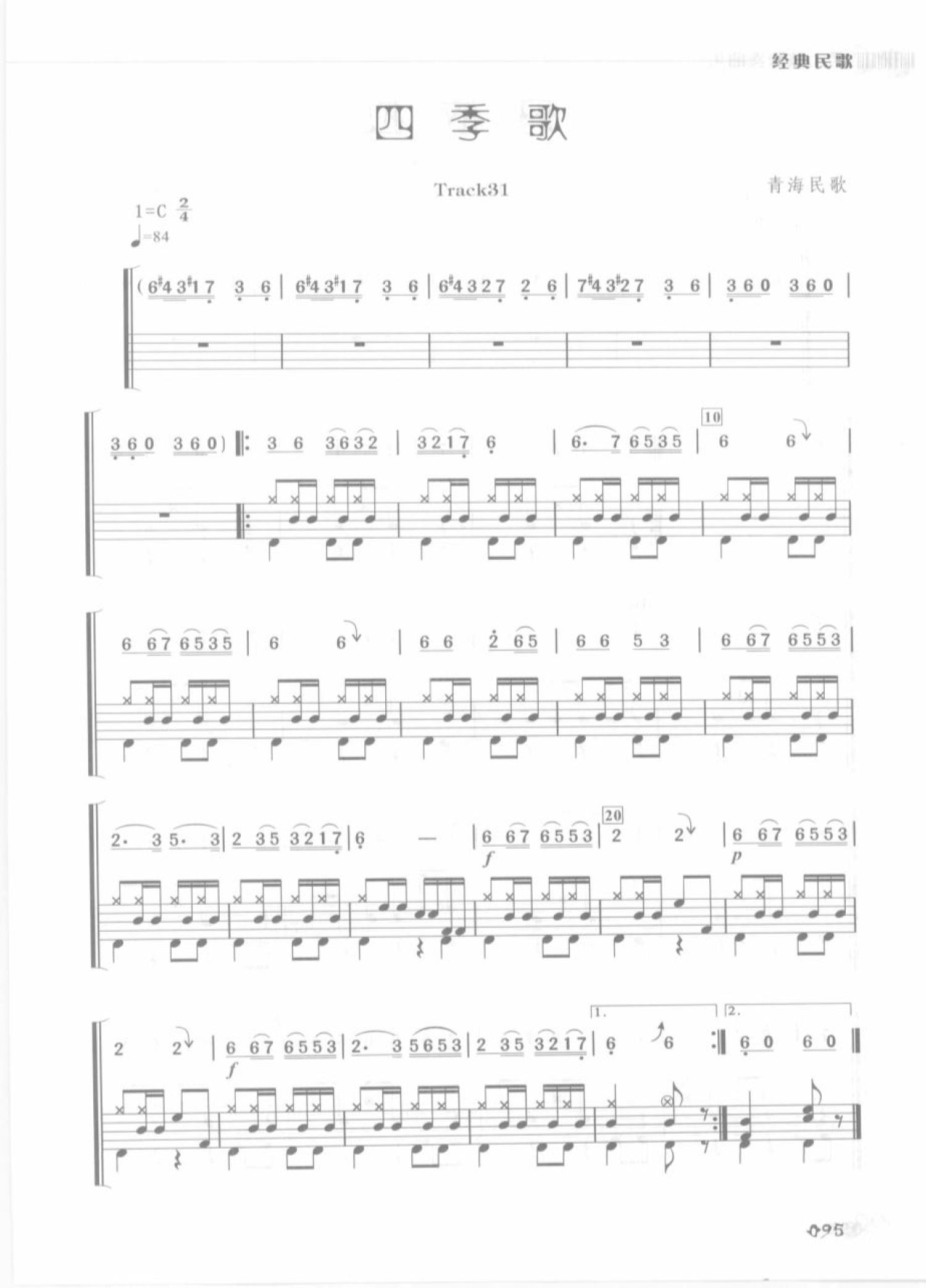 曲谱介绍: 四季歌(架子鼓谱)
